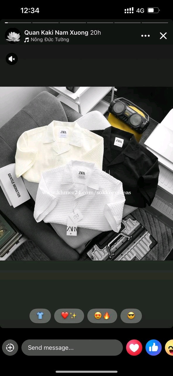 អាវក្រណាត់ដៃខ្លី Zara Size M L XL 2XL បោះ 1=24$ ចូលស្តុកហើយ កម៉ុងតាម http://t.me/Sokkrey988 Phone :0968086xxxClick To Call