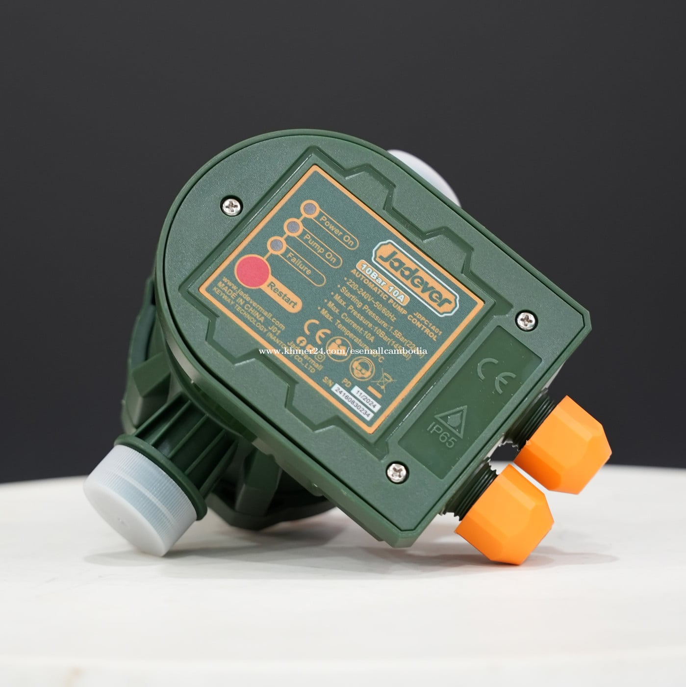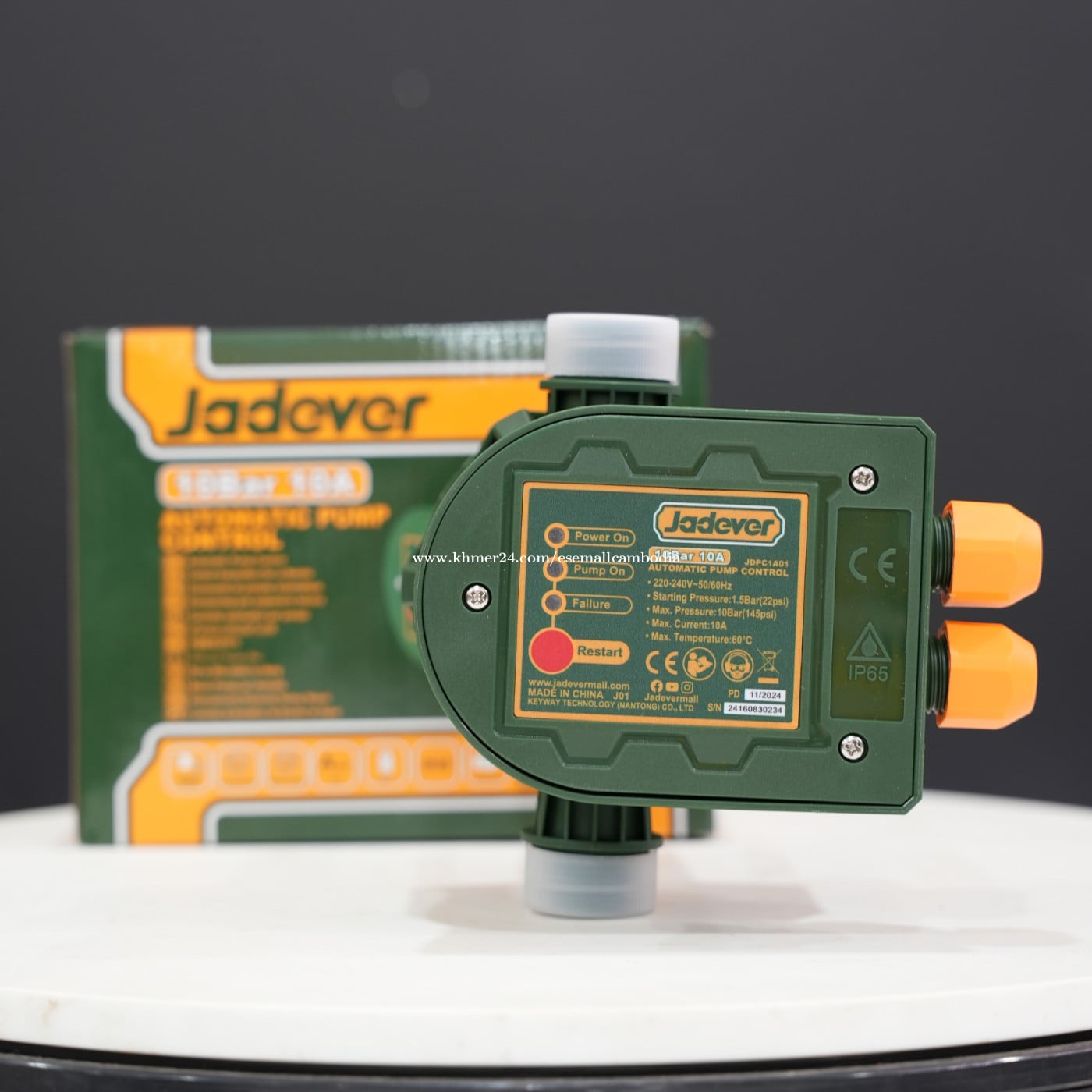 ឧបករណ៍គ្រប់គ្រងម៉ាស៊ីនបូមទឹកស្វ័យប្រវត្តិ Jadever 10Bar 10A (Automatic Pump Control) (JDPC1A01) តម្លៃ៖ $23.40 សភាព៖ ថ្មី 100% មានប្រអប់ដើម ម៉ាក៖ Jadever ម៉ូដែល៖ JDPC1A01 វ៉ុលប្រើប្រាស់៖ 220–240V / 50–60Hz ពណ៌នាផលិតផល ឧបករណ៍គ្រប់គ្រងម៉ាស៊ីនបូមទឹកស្វ័យប្រវត្តិ Jadever ត្រូវបានរចនាឡើងសម្រាប់បញ្ជា និងការពារម៉ាស៊ីនបូមទឹកឲ្យដំណើរការបានសុវត្ថិភាព និងមានប្រសិទ្ធភាព។ ឧបករណ៍នេះអាចបើក–បិទម៉ាស៊ីនបូមទឹកដោយស្វ័យប្រវត្តិ ពេលមានការប្រើទឹក និងបញ្ឈប់ម៉ាស៊ីនបូមពេលគ្មានទឹក ឬមានបញ្ហា ដើម្បីការពារម៉ូទ័រមិនឲ្យខូច។ លក្ខណៈបច្ចេកទេស វ៉ុល៖ 220–240V / 50–60Hz សម្ពាធចាប់ផ្តើម (Starting Pressure):1.5 Bar (22 psi) សម្ពាធអតិបរមា៖ 10 Bar (145 psi) ចរន្តអគ្គិសនីអតិបរមា៖ 10A សីតុណ្ហភាពអតិបរមា៖ 60°C កម្រិតការពារទឹក និងធូលី៖ IP65 មុខងារ និងអត្ថប្រយោជន៍ បើក–បិទម៉ាស៊ីនបូមទឹកដោយស្វ័យប្រវត្តិ ការពារម៉ាស៊ីនបូមពេលគ្មានទឹក (Dry Run Protection) មានភ្លើងសញ្ញាបង្ហាញ Power On / Pump On / Failure មានប៊ូតុង Restart សម្រាប់កំណត់ឡើងវិញ សាកសមសម្រាប់ប្រើជាមួយម៉ាស៊ីនបូមទឹកតាមផ្ទះ អគារតូចៗ និងប្រព័ន្ធទឹកទូទៅ