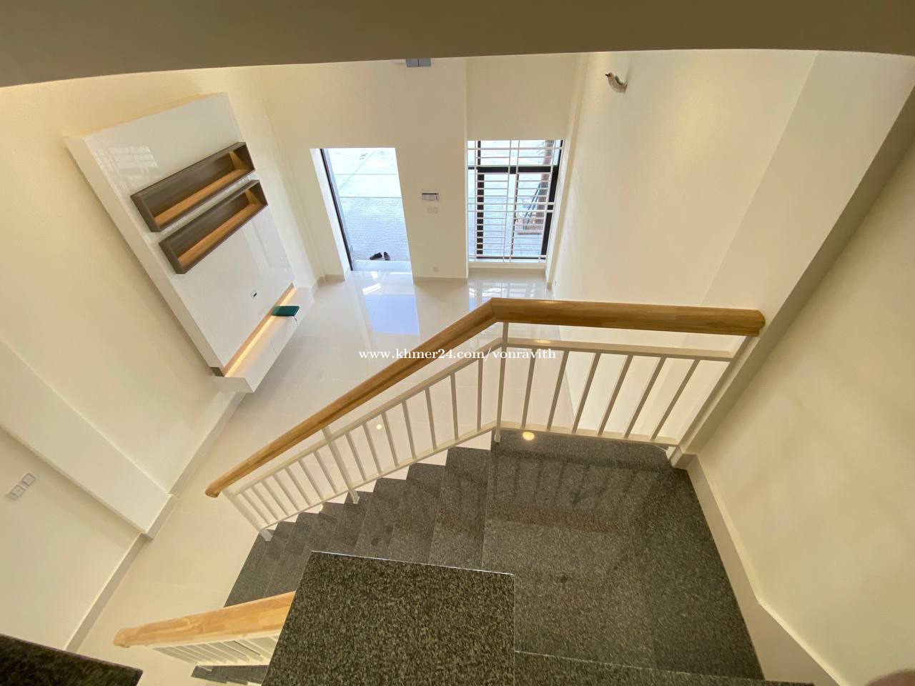 ☆ វីឡាកូនកាត់LVសម្រាប់ជួល | Link Villa LV for Rent - តម្លៃជួល | Price Rent : $430 - សម្ភារៈ | Furniture : No - ទំហំផ្ទះ | House size : 4.2m x 10m - ទំហំដី | Land size : 4.2m x 17m - បន្ទប់គេង | Bedroom : 4 - បន្ទប់ទឹក | Bathroom : 5 - ផ្ទះបាយ | Kitchen : 1 - បន្ទប់ទទួលភ្ញៀវ | Livingroom : 1 - ផ្ទះបែរទៅខាងកើត | Facing to East ☆ ទីតាំង ក្នុងបុរីប៉េងហួតបឹងស្នោរ សង្កាត់វាលស្បូវ ខណ្ឌច្បារអំពៅ គម្រោងអេកូរ៉ូម៉ែនស៍ | Location in Borey Peng Houth Beoung Snor
