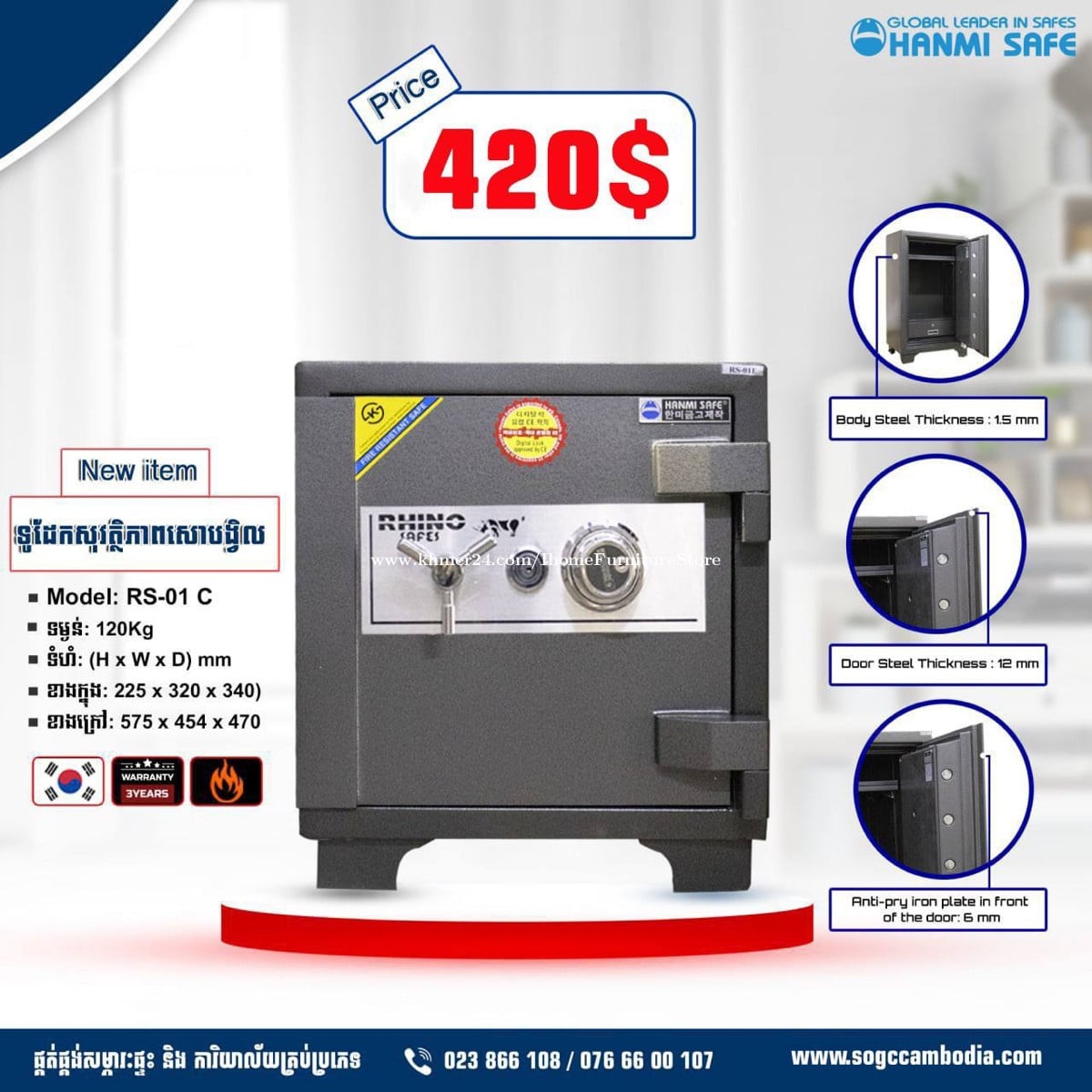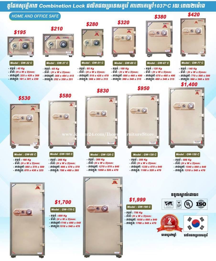 🥇💰ការថែរក្សារទ្រព្យសម្បត្តិ វត្ថុសំខាន់របស់បងប្អូន ជាភារកិច្ចរបស់ទូដែកសុវត្ថិភាព #GOODWILL ដែលផ្ដល់នូវទំនុកចិត្ត សុវត្ថិភាពខ្ពស់ ភាពទទួលខុសត្រូវ និង សេវាកម្មរហ័សទាន់ចិត្ដ❤️ ----------------------------------------- 📌ជាផលិតផលសុទ្ធនាំចូលពីប្រទេសកូរ៉េ 📌ជាមួយនិងការរចនាម៉ូតដ៏ប្រណិត♦️កំម្រាស់នៃសាច់ដែកក្រាស់ល្អ! 📌រូបមន្តនៃការផ្សំសមាសធាតុ អុីសូឡង់និង Power Shield ដែរអាចការពារកម្ដៅអគ្គីភ័យបាន1037អង្សារ រយៈពេល២ម៉ោង🔥 📌ទឹកថ្នាំប្រភេទ Power Coating ដែរមានភាពរលោង ការពារស្នាមឆ្កូតឬប្រឡាក់ផ្សេងៗបានយ៉ាងល្អ 📌មានប្រព័ន្ធសោរសុវត្ថិភាពនិងមានការការពារខ្ពស់✅ 📌មានការធានាជូនរយៈពេល២ឆ្នាំទៅលើប្រព័ន្ធសោរ ❗️ចូលរួមថែរក្សាទ្រព្យសម្បត្តិជាមួយយើងខ្ញុំទាំងអស់គ្នា🔰 ----------------------------------------- 👉 ព័ត៌មានលម្អិតសូមទំនាក់ទំនងមកកាន់លេខ ☎️ 070372xxxClick To Call 👉តេឡេក្រាម: https://t.me/ChomKanha 👉ចូលក្រុបតំលៃធូរ: https://t.me/ihomefurniture Facebook page: https://www.facebook.com/ihomefashion.kh
