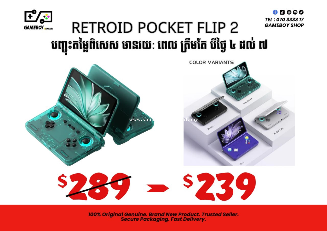 ❤️ RETROID POCKET FLIP 2 ❤️ ថ្មី បញ្ចុះតម្លៃពិសេស មានរយៈ ពេលត្រឹមតែ បីថ្ងៃ 4 ដល់ 7 បាទ ❤️ ✅Call 070333xxxClick To Call ✅telegram ផ្ទាល់ Admin https://t.me/MrDARA3333 ✅ក្រុម Telegam https://t.me/GameboyCambodia ✅Website www.Gameboycambodia.com ✅ទីតាំង ហាង https://maps.app.goo.gl/9WHd37EHL614kZX2A?g_st=com.google.maps.preview.copy