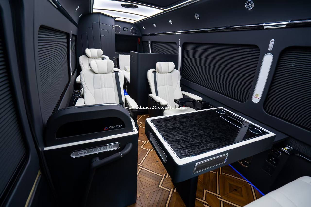 丰田考斯特7座版是一款高端豪华商务房车,以其卓越的舒适性、高度的私密性和顶级的定制化服务成为商务接待和精英出行的理想选择。车内配备电动航空座椅、豪华办公桌、车载冰箱、多媒体影音系统及隔音隐私窗帘,部分改装版本甚至提供车载卫生间(需注意并非所有7座版标配,通常为选装或特定改装版本)。其宽敞的内部空间和精湛的工艺确保了尊贵的乘坐体验。感兴趣主页咨询✈️☎️973697102
