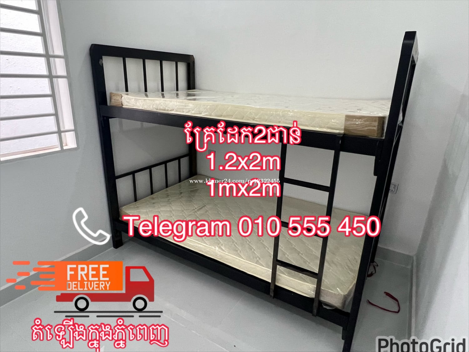 គ្រែ2ជាន់ដែលមានគុណភាពរឹងមាំល្អ ដាក់កន្លែងការងារសំរាប់បុគ្គលិក សំរាប់កូនកូន សំរាប់សិស្សសាលា 🛌 យកច្រើនមានតម្លៃពិសេសជូន 🎉 🎉🎉 ✅ ធានាសាច់ដែកក្រាស់ល្អ រនាបរនូទញឹកល្អ ☎️Telegram 010555xxxClick To Call ☎️ ចុចtelegram https://t.me/meng111119 📍ចុចផេកhttps://www.facebook.com/leak010555450?mibextid=D4KYlr 📍ទីតាំងហាងលក់https://maps.app.goo.gl/DJA6NgpXHjYSYbRDA?g_st=it 💥សម្រាប់ព័ត៌មានបន្ថែមសូមទំនាក់ទំនងតាមរយៈ 📍 ទីតាំងភ្នំពេញហ្វ្រីសេវាដឹកតំឡើងជូនឥតគិតថ្លៃ 🏠បោះដុំ និងលក់រាយ25ខេត្តក្រុង ✍Telegram:010555xxxClick To Call ☎️ ចុចtelegram https://t.me/meng111119 មានក្នុងស្តុកហើយ អាចកម្មង់បានម៉ូយៗ ☎️ 𝐜𝐚𝐥𝐥 ☎️010555xxxClick To Call smart ☎️012322xxxClick To Call Cellcard ☎️ 0972444xxxClick To Call Metfone ✅ផ្នែកលក់ 𝐒𝐞𝐥𝐥𝐞𝐫 卖方 🚚📦មានសេវ៉ាដឹកជញ្ជូន គ្រប់២៥ ខេត្ត ក្រុង និង រាជធានី 𝐅𝐫𝐞𝐞 𝐝𝐞𝐥𝐢𝐯𝐞𝐫𝐲 in Phnom Penh 🚚 金边免费送货🚚 𝐊𝐡𝐦𝐞𝐫 𝟐𝟒 …………………………………………………… សូមអរគុណ🙏 𝐓𝐡𝐚𝐧𝐤 𝐲𝐨𝐮 🤝