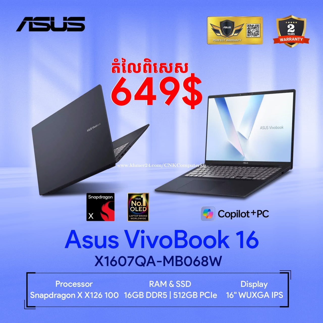 ๐๐๐ ๐๐๐๐ ๐๐ข๐ฏ๐จ๐๐จ๐จ๐ค ๐๐ ๐๐๐๐๐๐๐ ----------------------------------- - Snapdragon X X126 100 Processor - Hexagonโข NPU up to 45TOPS - RAM : 16GB LPDDR5x | SSD : 512GB PCIe - Display : 16" WUXGA IPS-level - GPU : Qualcommยฎ Adrenoโข GPU - Features : Backlit Keyboard | Copilot key - Battery : 50WHrs, 3S1P, 3-cell Li-ion - OS : Windows 11 License - 1.88 kg | Quiet Blue ๐๐๐ ๐๐จ๐ฆ๐ฉ๐ฎ๐ญ๐๐ซ (แแแแผแแแแแแปแแถแแแแแ) โ๏ธ แแแถแแแแแแ 0930957xxxClick To Call 77 ๐ฌ Telegram : t.me/cnkcomputer93 ๐ Website: https://cnkcomputer.com/