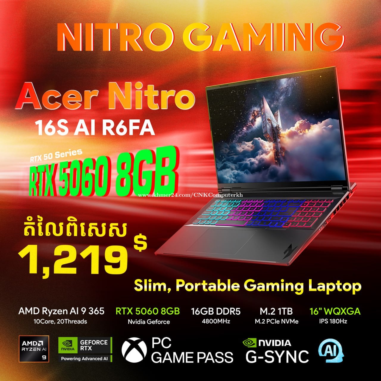 ๐๐๐ ๐๐๐๐ซ ๐๐" ๐๐ข๐ญ๐ซ๐จ ๐ ๐๐๐ ๐๐ ๐๐๐ ๐ -------------------------------------- - CPU : AMD Ryzenโข AI 9 365 (10C/20T) - RAM : 16GB DDR5 - Storage : 1TB M.2 PCIe - Display : 16" WQXGA IPS 180Hz - GPU : NVIDIA RTX 5060 8GB GDDR7 - Windows 11 Pro Recommendation - RGB 4 Zones Backlight - 2.1 kg | Color : Obsidian black ๐๐๐ ๐๐จ๐ฆ๐ฉ๐ฎ๐ญ๐๐ซ (แแแแผแแแแแแปแแถแแแแแ) โ๏ธ แแแถแแแแแแ 0930957xxxClick To Call 77 ๐ฌ Telegram : t.me/cnkcomputer93 ๐ Website: https://cnkcomputer.com/