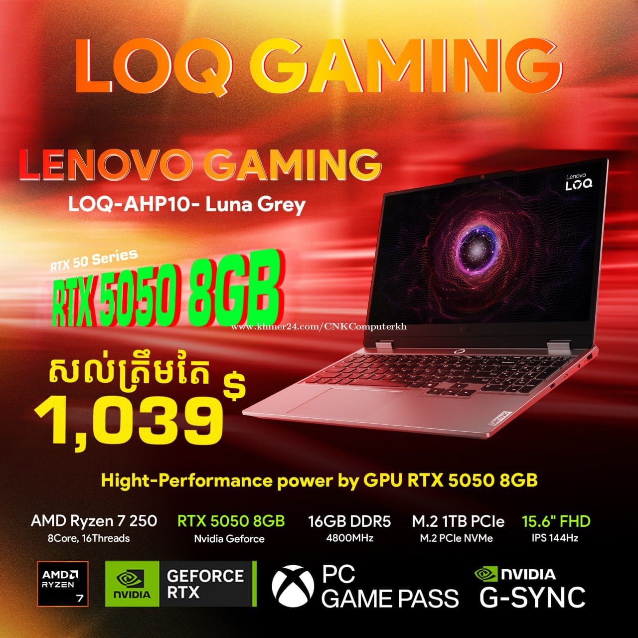 ๐๐๐ ๐๐๐๐๐๐ ๐๐๐-๐๐๐๐๐ ๐๐๐๐๐๐ ------------------------------------------- - AMD Ryzenโข 7 250 (8Cores 16Threads) - Lenovo AI Engine+ Support - RAM : 16GB DDR5 - Storage : 1TB M.2 PCIe 4.0 - Display : 15.6" FHD 144Hz 100%sRGB - GPU : NVIDIA RTX 5050 8GB GDDR7 - Backlit Keyboard , NumPad - OS : Windows 11 License - 2.3Kg | Color : Luna grey ๐๐๐ ๐๐จ๐ฆ๐ฉ๐ฎ๐ญ๐๐ซ (แแแแผแแแแแแปแแถแแแแแ) โ๏ธ แแแถแแแแแแ 0930957xxxClick To Call 77 ๐ฌ Telegram : t.me/cnkcomputer93 ๐ Website: https://cnkcomputer.com/