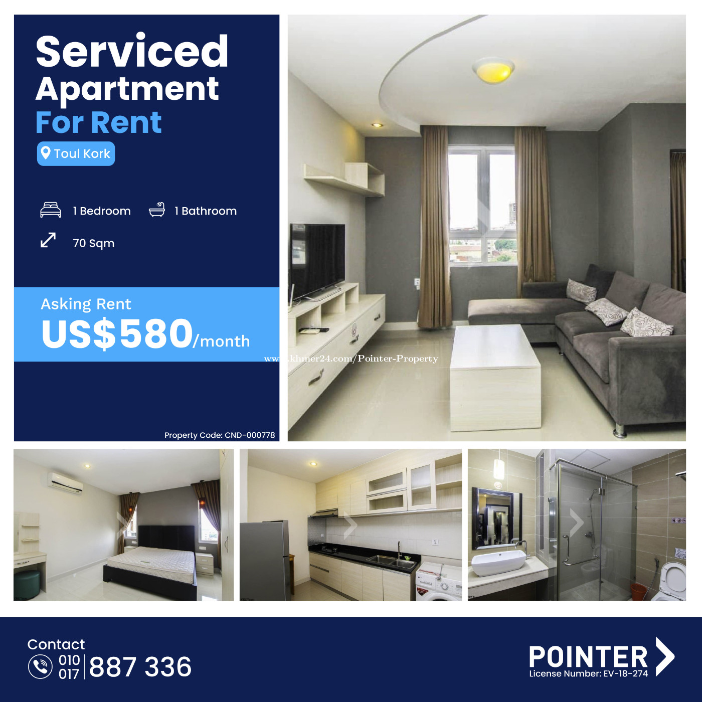 🔥This apartment is located in Toul Kork and is available for $580 per month. It offers one bedroom and one bathroom with a total size of 70sqm, making it a comfortable choice for singles or couples 💸Asking Rent: US$580/month 🛌 1-Bedroom 🛁 1-Bathroom 📐70sqm 🔹 Fully furnished 🔹 Including gym, swimming pool 🔹 Cleaning 2 times/week 🔹 24/7 CCTV and security guards 🔹 Electricity Fee: US$0.30/kWh 🔹 Water Fee: US$10/month 👉For more information or to schedule an inspection, please reach out to us via: 📱 Our Hotline +8551088xxxClick To Call6 📱 OR WhatsApp/telegram +8551788xxxClick To Call6 👉 Telegram: t.me/pointerproperty 📌Property code: CND-000778 🔗Link to property: