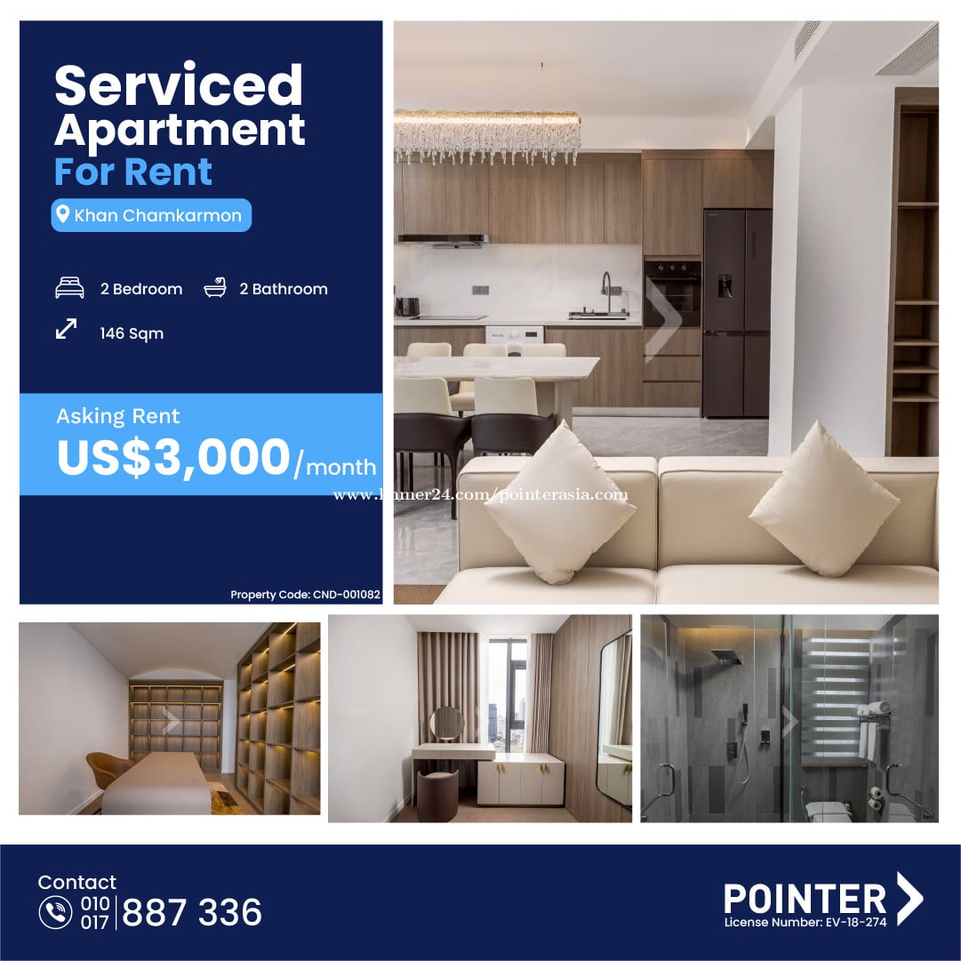 ๐ข Luxury 2 Bedroom Apartment For Rent at Tonle Bassac This spacious serviced apartment is located in the prime Tonle Bassac area, offering a perfect blend of comfort, style, and convenience. With a generous size ofย 146 sqm, the unit featuresย 2 bedrooms and 2 bathrooms, making it ideal for couples, small families, or professionals seeking extra space. The apartment isย fully set up and move-in ready, designed with a modern and fresh interior that creates a bright and welcoming living atmosphere. Internet/WiFi and regular cleaning service are included, allowing for a truly hassle-free lifestyle. Its strategic location providesย easy access to Aeon Mall and BKK1, surrounded by popular restaurants, cafรฉs, and daily amenities. The building also offersย 24/7 security, ensuring a safe and comfortable living experience. The rental price isย $3,000 per month, reflecting its premium location and quality living standard. ๐ธAsking Rent: US$3,000 ๐ 2-Bedroom ๐ 2-Bathroom ๐ 146sqm ๐น Fully furnished ๐น Cleaning 2 times/week ๐น Water Fee: Free ๐น Including gym, swimming pool ๐น Electricity Fee: US$0.25/kWh ๐น 24/7 CCTV and security guards ๐น Wifi: Free ๐น Management Fee: Free ๐For more information or to schedule an inspection, please reach out to us via: ๐ฑ Our Hotline +8551088xxxClick To Call6 ๐ฑ OR WhatsApp/telegram +8551788xxxClick To Call6 ๐ Telegram: t.me/pointerproperty ๐Property code: CND-001082 ๐Link to property: https://pointer.asia/PSMmf #pointerproperties #apartmentsforrent #cambodiaproperty #trustableagent #rentalproperty #condoforrentinphnompenh