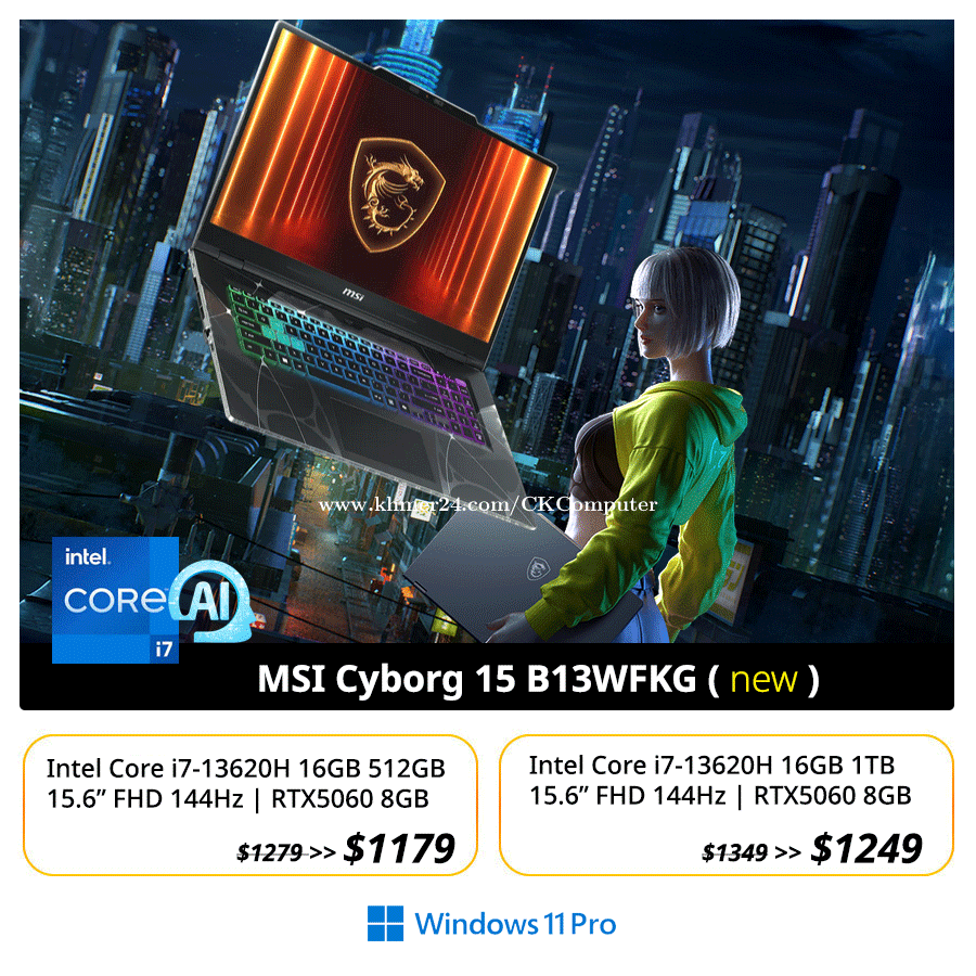 ๐๐ MSI Cyborg 17 Gaming ( RTX5060 / RGB Key ) ----------------------------- ๐ฏ Core 7 240H 16GB 1TB 17.3" RTX5060 = $1229 ๐ฏ Core 7 240H 32GB 1TB 17.3" RTX5060 = $1399 ๐ฏ Core i7 13620H 32GB 1TB 15.6" RTX5060 = $1399 ๐ฏ Core i7 13620H 16GB 512GB 15.6" RTX5050 = $999 ๐ฏ Core i7 13620H 16GB 1TB 15.6" RTX3050 = $875 ** New Laptop | RAM DDR5 | RGB Keyboard ------------------------------------- โ๏ธ แแแถแแแแแแ 093737xxxClick To Call ๐ฌ Telegram : t.me/cnkcomputer93