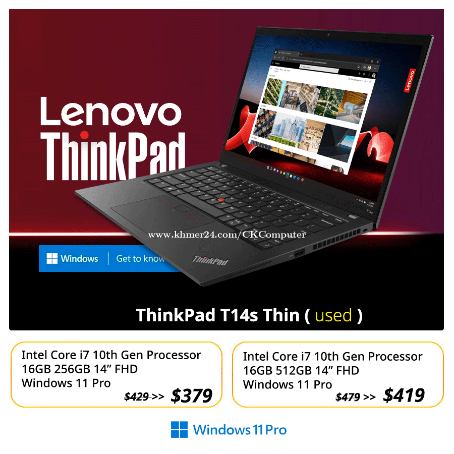 ๐๐ ThinkPad T14s THIN ( Intel Core i7 ) ----------------------------- ๐ฏ i7 16GB 128GB 14" FHD Windows 11 Pro $359 ๐ฏ i7 16GB 256GB 14" FHD Windows 11 Pro $379 ๐ฏ i7 16GB 512GB 14" FHD Windows 11 Pro $419 ๐ฏ i7 16GB 1TB 14" FHD Windows 11 Pro $479 ๐ฏ i7 16GB 2TB 14" FHD Windows 11 Pro $569 ** Core i7 | Backlit Key | Used ------------------------------------- โ๏ธ แแแถแแแแแแ 093737xxxClick To Call ๐ฌ Telegram : t.me/cnkcomputer93