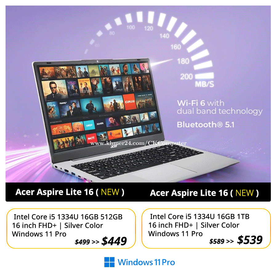 ๐ NEW | Acer Aspire lite 16 THIN ----------------------------------- 16 Inch FHD+ / RAM DDR5 | Windows 11 Pro ๐๐๐ ๐๐จ๐ฆ๐ฉ๐ฎ๐ญ๐๐ซ (แแแแผแแแแแแปแแถแแแแแ) โ๏ธ แแแถแแแแแแ 0950937xxxClick To Call 77 ๐ฌ Telegram : t.me/cnkcomputer93 ๐ Website: https://cnkcomputer.com/