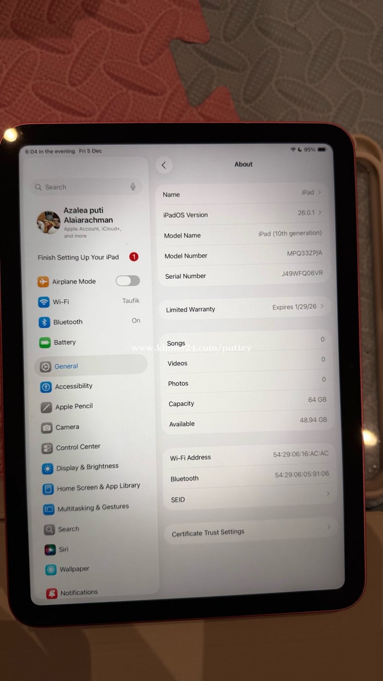 ๐ฑ iPad PINK Colour 10 th Generation (2022) Wifi Only 64 GB โจ 99% good Condition (Just Ipad and Charger, no box) โ๏ธ All functions normal, no issues ๐ Face ID unlocks instantly ๐ธ Camera works perfectly (photo & video) ๐ ๏ธ Never ๐ฐ Cheap price than others guarantee until 26 Jan 2026 Reason for selling? I've bought a newer iPad