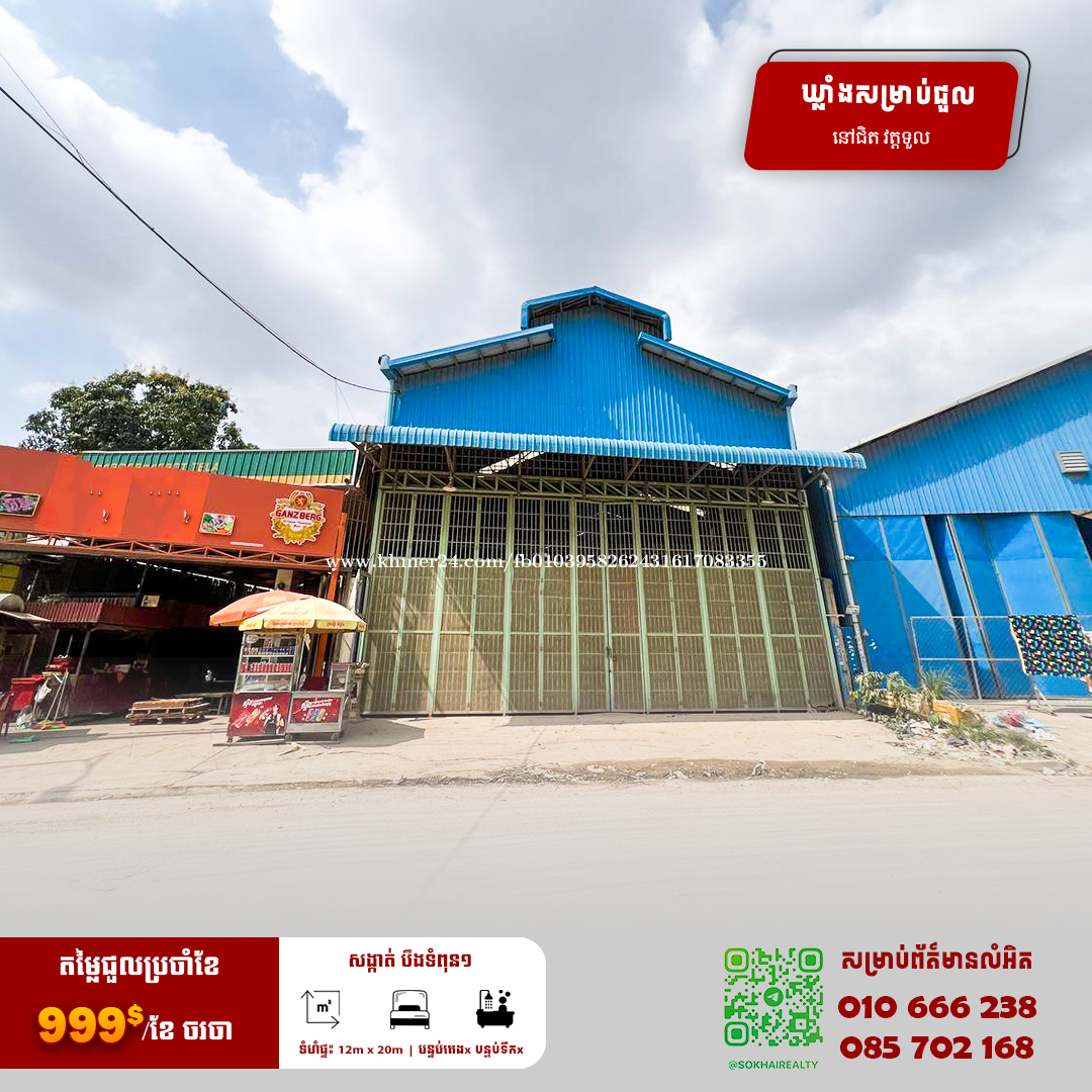🔰ឃ្លាំងសម្រាប់ជួល នៅម្តុំវត្តទួល - តម្លៃជួល$𝟗𝟗𝟗/ខែ ចរចា - ទំហំដី 𝟏𝟐𝐦 𝐱 𝟐𝟎𝐦 - ទំហំឃ្លាំង 𝟐𝟒𝟎𝐦𝟐 - បន្ទប់គេង 𝐱 - បន្ទប់ទឹក 𝐱 - ផ្លូវខាងមុខ 𝟖𝐦 ⛳️ទីតាំង|𝐋𝐨𝐜𝐚𝐭𝐢𝐨𝐧កែងផ្លូវ𝟕𝟕𝐁𝐓 សង្កាត់ បឹងទំពុន១ ខណ្ឌមានជ័យ ភ្នំពេញ _____________________ 📍សូមចូលទៅកាន់𝗧𝗲𝗹𝗲𝗴𝗿𝗮𝗺 𝗖𝗵𝗮𝗻𝗻𝗲𝗹ពេលនេះ ដើម្បីស្វែងរកអចលនទ្រព្យពិសេសផ្សេងទៀត៖ 🔗 𝐓𝐞𝐥𝐞. 𝐂𝐡𝐚𝐧𝐧𝐞𝐥:𝗵𝘁𝘁𝗽𝘀://𝘁.𝗺𝗲/𝗦𝗼𝗸𝗵𝗮𝗶𝗥𝗲𝗮𝗹𝘁𝘆 ☎️ 𝗧𝗲𝗹𝗲𝗴𝗿𝗮𝗺:𝟬𝟭𝟬 𝟲𝟲𝟲 𝟮𝟯𝟴 ☎️ 𝗧𝗲𝗹𝗲𝗴𝗿𝗮𝗺:𝟬𝟴𝟱 𝟳𝟬𝟮 𝟭𝟲𝟴