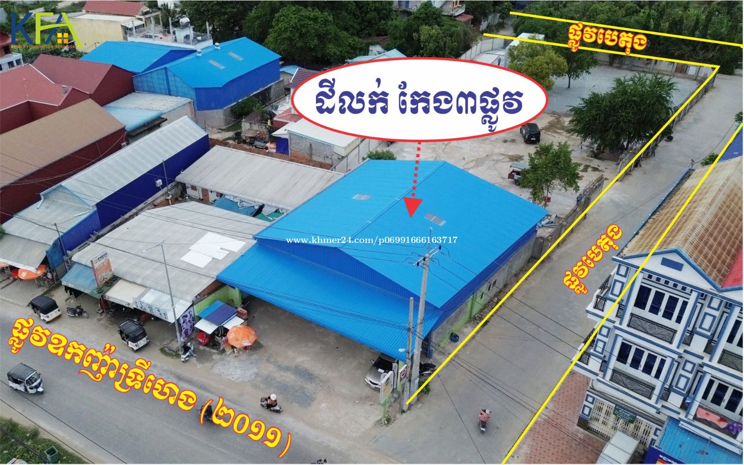 " ដីកែង3ផ្លូវ លក់បន្ទាន់ " * ទីតាំង ៖ នៅលើផ្លូវអាជីវកម្ម (ផ្លូវទ្រីហេង ២០១១) សង្កាត់គោករកា ខ័ណ្ឌព្រែកព្នៅ រាជធានីភ្នំពេញ។ * តម្លៃលក់ ៖ $450 ក្នុង១ម៉ែត្រការ៉េ (តម្លៃចចារបាន) * ទំហំដី ៖ 2,675 ម៉ែត្រការ៉េ * ទូរស័ព្ទទំនាក់ទំនង ៖ 089906xxxClick To Call/ 0968945xxxClick To Call