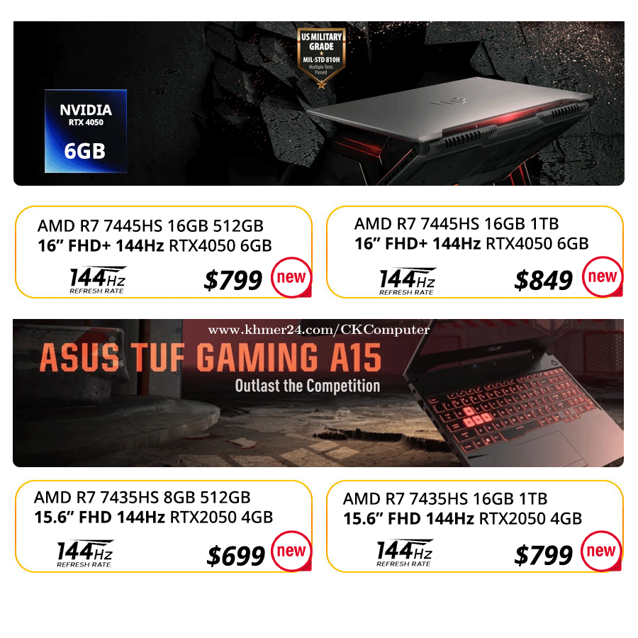 ๐๐ ASUS TUF A15 / A16 Gaming ----------------------- ๐ AMD Ryzen 7 7445HS 16" FHD+ 165Hz RTX4050 6GB Price : 949$ >> $799 | ๐๐๐๐ ๐๐๐ ๐๐๐ ๐ ๐๐๐๐๐๐๐ (new) ๐ AMD Ryzen 7 7435HS 15.6" FHD 144Hz RTX2050 4GB Price : 849$ >> $799 | ๐๐๐๐ ๐๐๐ ๐๐๐ ๐ ๐๐๐๐๐๐ ๐ (new) ------------------------------------- ๐๐๐ ๐๐จ๐ฆ๐ฉ๐ฎ๐ญ๐๐ซ (แแแแผแแแแแแปแแถแแแแแ) โ๏ธ แแแถแแแแแแ 0930957xxxClick To Call 77 ๐ฌ Telegram : t.me/cnkcomputer93 ๐ Website: https://cnkcomputer.com/
