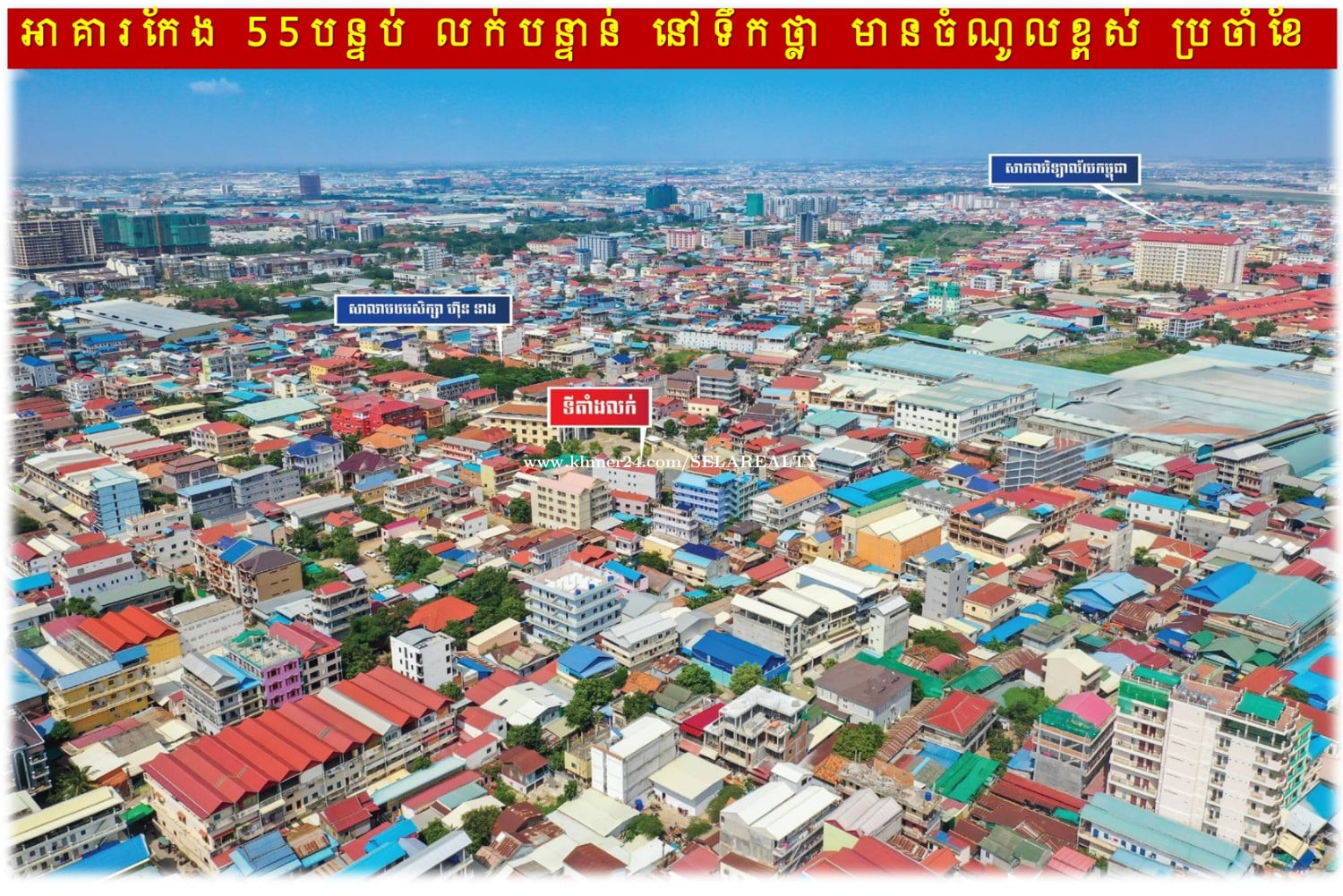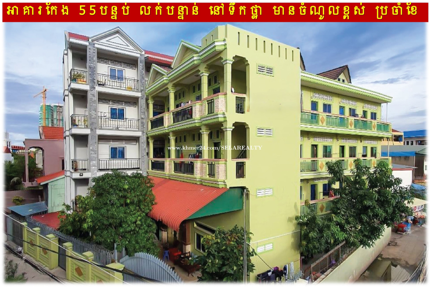 #7xxk »»» អាគារលក់បន្ទាន់ ដីកែង ចំណូលខ្ពស់ នៅទឹកថ្លា ក្រោយពេទ្យរ៉ូយ៉ាល់ » មានចំណូល៖ ៤,០០០ ដុល្លារ/ខែ » ទំហំដី៖ ១៩ម គុណ ២៩ម » ទំហំលើប្លង់រឹង៖ ៣៥៤ ម២ » អាគារទី១៖ ៩.៥ម គុណ ១៩.៥ម (៣ជាន់) » អាគារទី២៖ ៤.៥ម គុណ ២៧ម (៤ជាន់) » ផ្ទះជាន់ផ្ទាល់ដី៖ បន្ទប់គេង ៣, បន្ទប់ទឹក ៣, ផ្ទះបាយ ... » បន្ទប់ជួល៖ ៥៥ (បន្ទប់គេង បន្ទប់ទឹក និងផ្ទះបាយ) » ចំណត៖ រថយន្ត ២, ម៉ូតូ ១២០ » អាគារមានបំពាក់កាមេរ៉ាសុវត្ថិភាព » ទីតាំងមានមនុស្សរស់នៅច្រើន រកចំណូលបានពីការជួលងាយស្រួល ... » តម្លៃ៖ ៧x០,០០០ ដុល្លារ » ផ្ទេរកម្មសិទ្ធិ៖ វិញ្ញាបនបត្រសម្គាល់ម្ចាស់អចលនវត្ថុ ប្លង់រឹង LMAP » ស្ថិតនៅ៖ ភូមិស្នែងរលឹង សង្កាត់ទឹកថ្លា ខណ្ឌសែនសុខ រាជធានីភ្នំពេញ 👉 ទំនាក់ទំនងជាមួយភ្នាក់ងារទទួលសិទ្ធិលក់ផ្តាច់មុខ៖ 069239xxxClick To Call | 095799xxxClick To Call | 0713023xxxClick To Call 👉 គ្រុបតេឡេក្រាម៖ https://t.me/+LxD_l_Ua3IA5NTI9 👉 តាមដានបណ្តាញសង្គមយើងខ្ញុំ៖ https://linko.page/sz66qj64k6gv #SELAREALTY #BPR_Team #Land #House #Villa #Condo #Consultant #SALE #RENT #LEASE #BUY #Property #PhnomPenh #Cambodia