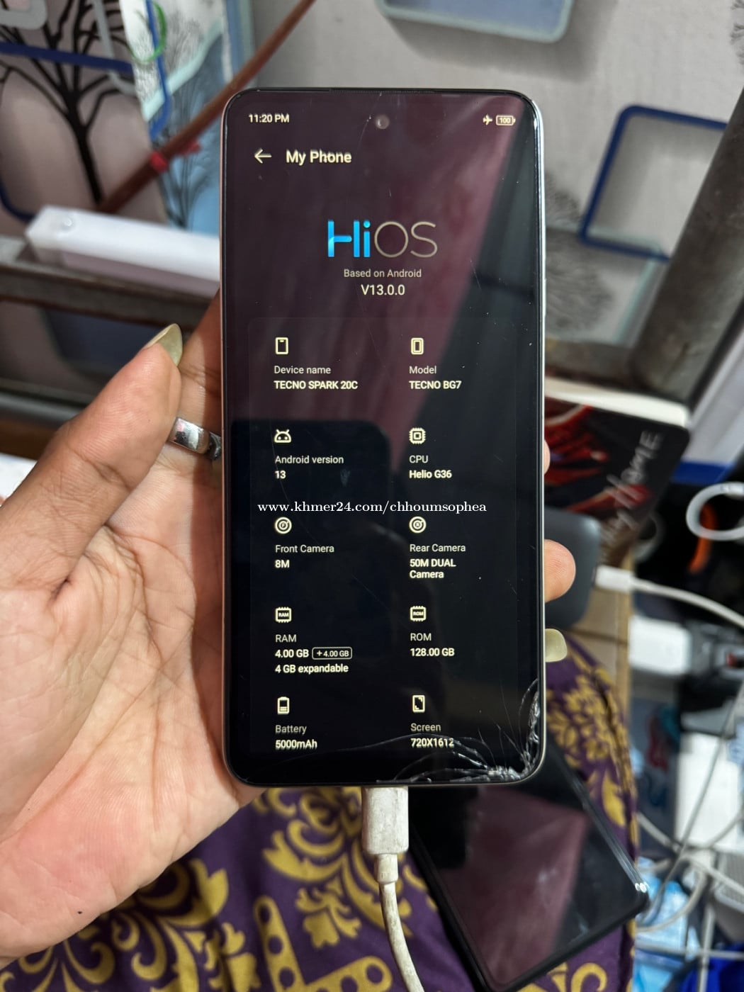 Techno Spark 20c Free Modem WIFI (បែកអេក្រង់ប្រើបាន) Android 13 CPU : Helio G36 Ram : 4+4GB ROM : 128GB Camera : 50Mega Pixel Screen : 720x1612 Battery : 5000mAh / Charge : 18W Modem WIFI 12.5$ but free