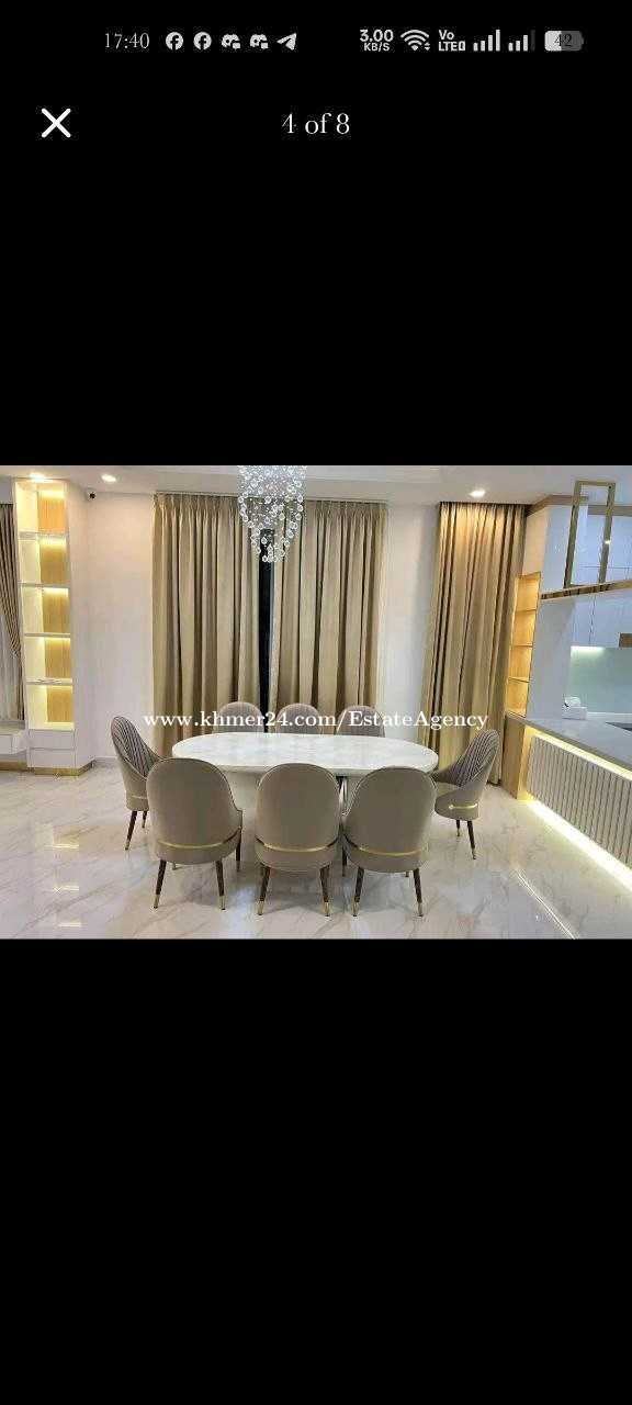 Prince-B Villa ML Tiara Takhmao Rent : 4,200$ Per month Land Size : 411 m2 House Size : 9m x 12m Bedroom : 6 Bathroom : 7 Full furnished ☎️ 061657xxxClick To Call / 0966577xxxClick To Call Telegram : @socheat6168