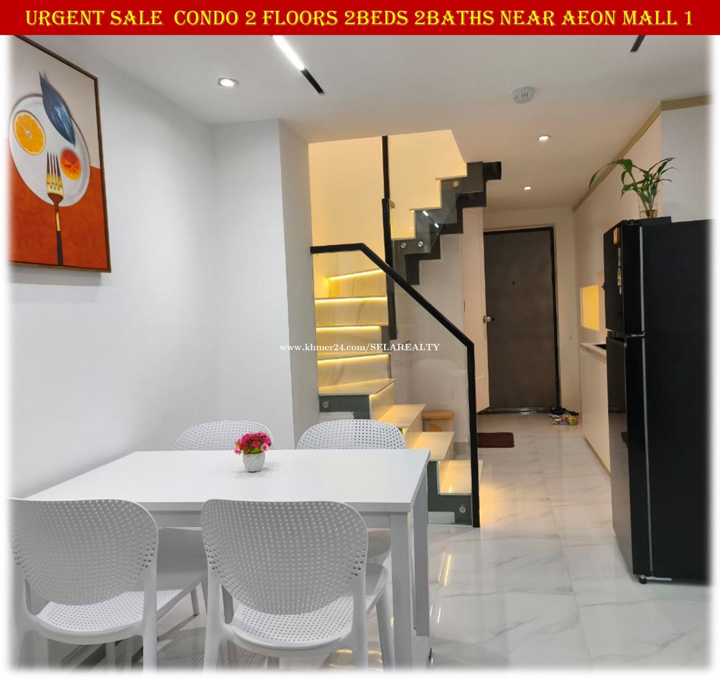 #SC004 ๐ URGENT SALE Brand New Condo Duplex Type ( 2 Floors 2Beds 2Bath) Near AEON Mall 1 - Floor: 10th Plus - Room Net Area: 60 sqm - Size On Title: 30 sqm - Bedroom: 2 - Bathroom: 2 - Balcony: 1 - Living Area, Kitchen, Dinning Space - Fully Furnished - Facilie: swimming pool, gym, steam, sauna, garden, super market, office ... - Locate infront of russian embassy, near aeon 1, kos pich, riverside, independence monument, restaraunts, night club, school, university, CBD area ... - Price: $120,000 - Transfer Ownership: Strata Title - Map: https://maps.app.goo.gl/wft7KPfGQP2NNYiw6 ๐ Contact Exclusive Realtor: 069239xxxClick To Call | 095799xxxClick To Call | 0713023xxxClick To Call ๐ Telegram Group: https://t.me/+LxD_l_Ua3IA5NTI9 ๐ Follow Our Social Media: https://linko.page/sz66qj64k6gv #SELAREALTY #BPR_Team #Land #House #Villa #Condo #Consultant #SALE #BUY #RENT #LEASE #PhnomPenh #Cambodia