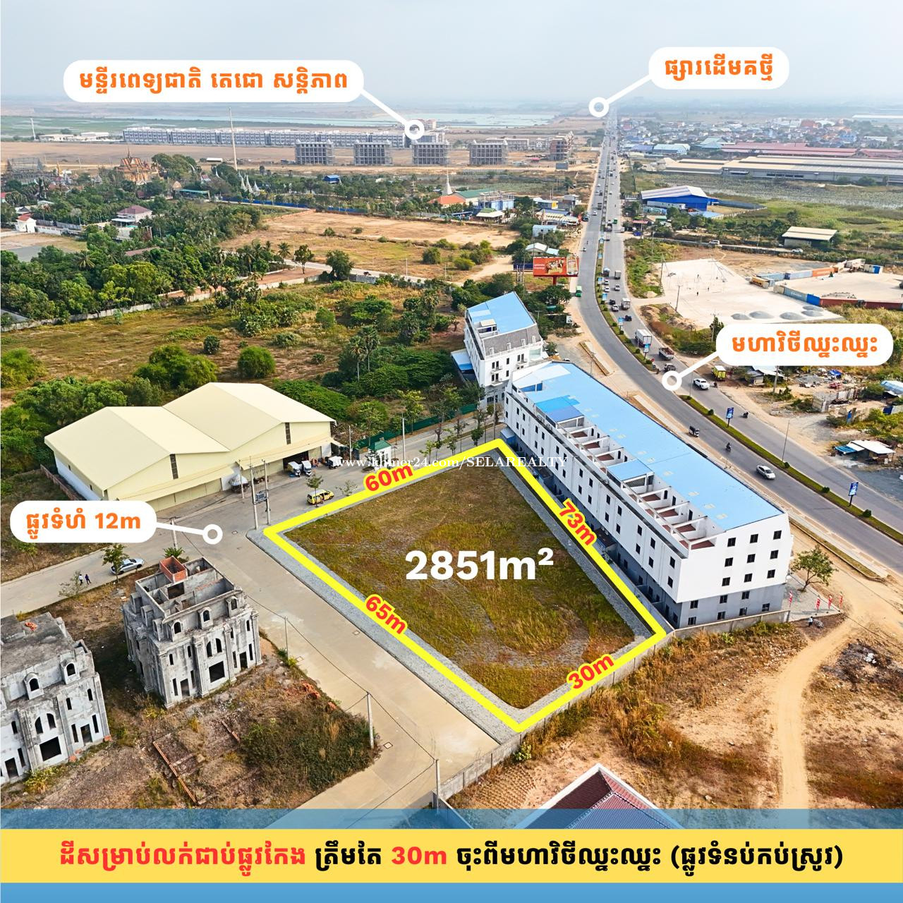 #SD018 »»» ដីកែង ជិតផ្សារដើមគថ្មី លក់បន្ទាន់ ជាប់ផ្លូវមេ ១២ម ច្រកចូល បុរីបៃតងលែន មហាវិថីឈ្នះឈ្នះ » ល្អសម្រាប់សង់ ភូមិគ្រឹះ សាលារៀន មន្ទីពេទ្យ អាគារពាណិជ្ជកម្ម ... » ជិតមន្ទីរពេទ្យសន្តិភាពសម្តេចតេជោ » ខាងជើងសាលាកូរ៉េ ១.៥គម » ចំងាយ ៦.៥គម ពីផ្លូវល្បឿនលឿន ភ្នំពេញ-ក្រុងព្រះសីហនុ » ខ្នាតដី៖ ៦០ម គុណ ៦០ម (រាងចតុកោណព្នាយកែង) » ទំហំលើប្លង់៖ ២,៨៥១ ម២ » ផ្លូវបេតុង៖ ១២ម កែង ១២ម » ទិស៖ បែរទៅជើងជាប់ផ្លូវមេ ១២ម » ទិស៖ បែរទៅលិចជាប់ផ្លូវ ១២ម » តម្លៃ៖ ៦៩០,០០០ ដុល្លារ » ផ្ទេរកម្មសិទ្ធិ៖ វិញ្ញាបនបត្រសម្គាល់ម្ចាស់អចលនវត្ថុ ប្លង់រឹង LMAP » ស្ថិតនៅ៖ ភូមិត្រពាំងវែង សង្កាត់គោករកា ខណ្ឌព្រែកព្នៅ រាជធានីភ្នំពេញ 👉 ទំនាក់ទំនងជាមួយភ្នាក់ងារទទួលសិទ្ធិលក់ផ្តាច់មុខ៖ 069239xxxClick To Call | 095799xxxClick To Call | 0713023xxxClick To Call 👉 គ្រុបតេឡេក្រាម៖ https://t.me/+LxD_l_Ua3IA5NTI9 👉 តាមដានបណ្តាញសង្គមយើងខ្ញុំ៖ https://linko.page/sz66qj64k6gv #SELAREALTY #BPR_Team #Land #House #Villa #Condo #Consultant #SALE #RENT #LEASE #BUY #Property #PhnomPenh #Cambodia