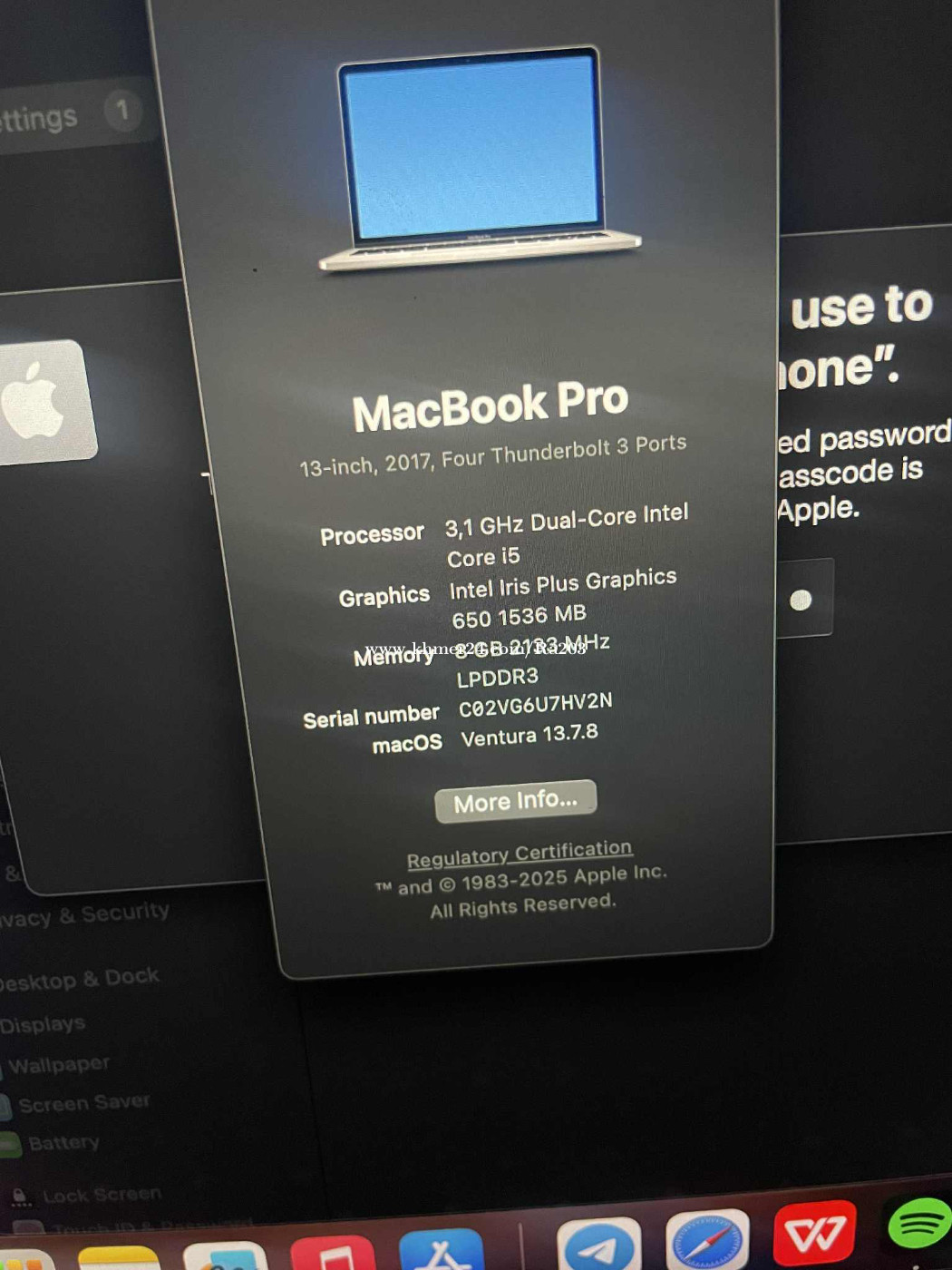 អាចចរចាតម្លៃបាន 🏷️ ត្រូវការលក់ចេញប្រញាប់! MacBook Pro 2017 Model A1706 There’s a few small pumps No bag Have the original charger Battery life between 93%~94🔋⚡️ អន់ screen តិច Overall looks is still new 80% ✅ Integrated graphics Can handles video playback, light gaming, and creative apps smoothly. ✅ Good for general tasks like browsing, documents, streaming, light photo editing and suitable for office work. Not Recommended ❌ Heavy 3D rendering or modern gaming 📦 No free delivery! Contact me directly @l0818 061575xxxClick To Call
