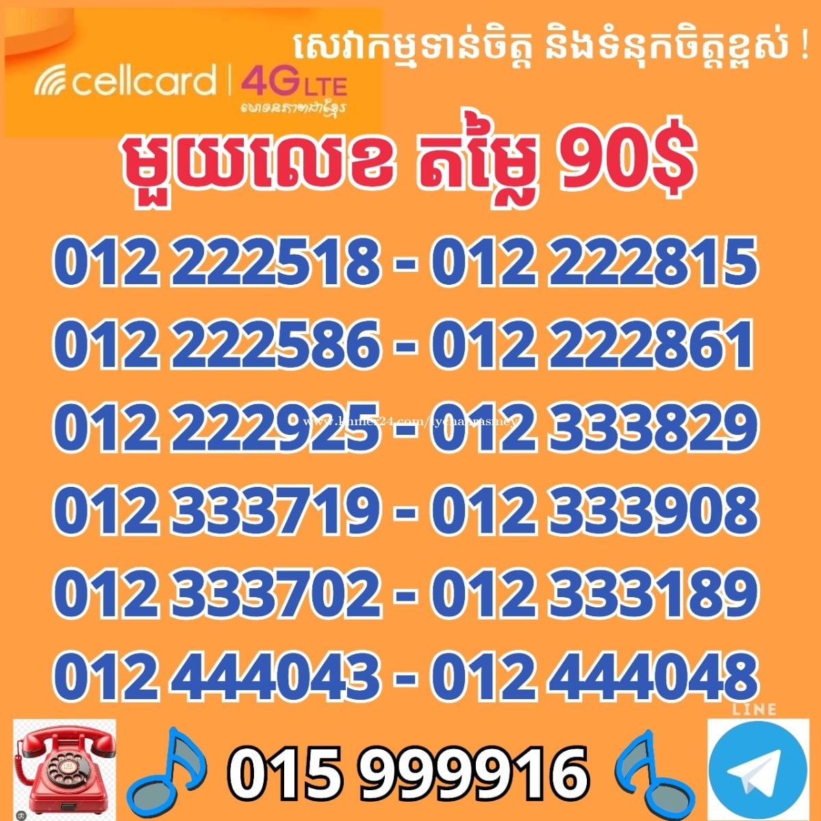 Cellcard 014 888812=450$ 014 888813=450$ 014 999971=450$ 014 222276=450$ 014 222279=450$ 014 333309=450$ 014 333321=450$ 014 333378=450$ 014 555579=450$ 014 666601=450$ 014 666658=450$ 014 321111=550$ 014 684444=550$ 014 888555=2000$ 014 262626=1250$ 014 303030=1250$ 014 373737=1250$ 014 666676=2000$ 014 666686=2000$ 014 666696=2000$ 014 888808=2500$ 014 888818=2500$ 014 356666=2500$ 014 988999=2000$ 014 444168=2000$ 014 333356=2000$ 014 666678=2500$ 014 666677=2500$ 014 222224=3000$ Metfone 068 999971 =850$ 068 999991 =3500$ 060 678888 =3500$ 088 6666692 =850$ 071 7777797 =2000$ 031 2225555 =2000$