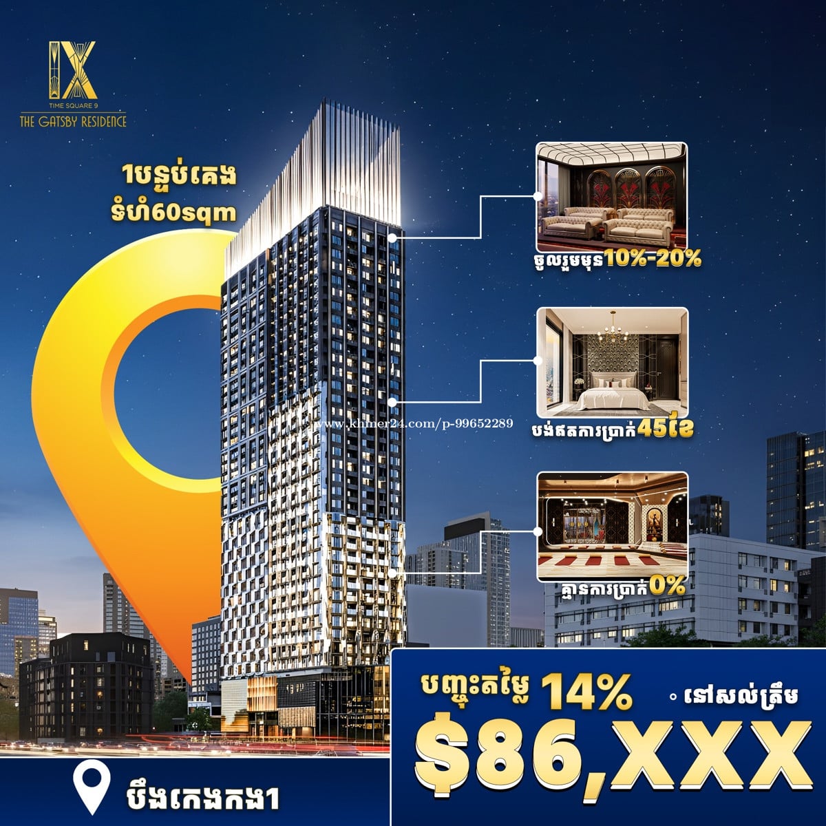 🔥 ឱកាសមាស! ក្លាយជាម្ចាស់ខុនដូក្នុងតំបន់ BKK1 ជាមួយតម្លៃដ៏អស្ចារ្យ! 🔥 ផ្តល់ជូននូវការរស់នៅលំដាប់ High-end នៅ Time Square 9 (BKK1) តំបន់ដែលថ្លៃថ្នូរ និងមានសក្ដានុពលបំផុតកណ្ដាលរាជធានីភ្នំពេញ។ 💎 ព័ត៌មានយូនីត៖ 🏠 ប្រភេទបន្ទប់៖ 1 បន្ទប់គេង (1 Bedroom) 📐 ទំហំ៖ 60 ម៉ែត្រការ៉េ (ធំទូលាយ និងមានផាសុកភាព) 📍 ទីតាំង៖ បឹងកេងកង ១ (តំបន់ពាណិជ្ជកម្ម និងស្នាក់នៅលំដាប់ផ្កាយ ៥) 💰 ការផ្តល់ជូនពិសេសមិនធ្លាប់មាន៖ 💵 តម្លៃដើម៖ ~~$100,000~~ 📉 បញ្ចុះតម្លៃពិសេស (Promotion): 14% ភ្លាមៗ ✅ តម្លៃលក់សល់ត្រឹមតែ៖ $86,000 ប៉ុណ្ណោះ! ☎️Contact for details: 📱 099652xxxClick To Call l 093652xxxClick To Call | 010482xxxClick To Call 👉 Telegram: https://t.me/SalesAdminOfficer https://t.me/sreypichpom 👉 Telegram channel: https://t.me/PropertySaleCenter 👉 Telegram group: https://t.me/CondoRentCenters