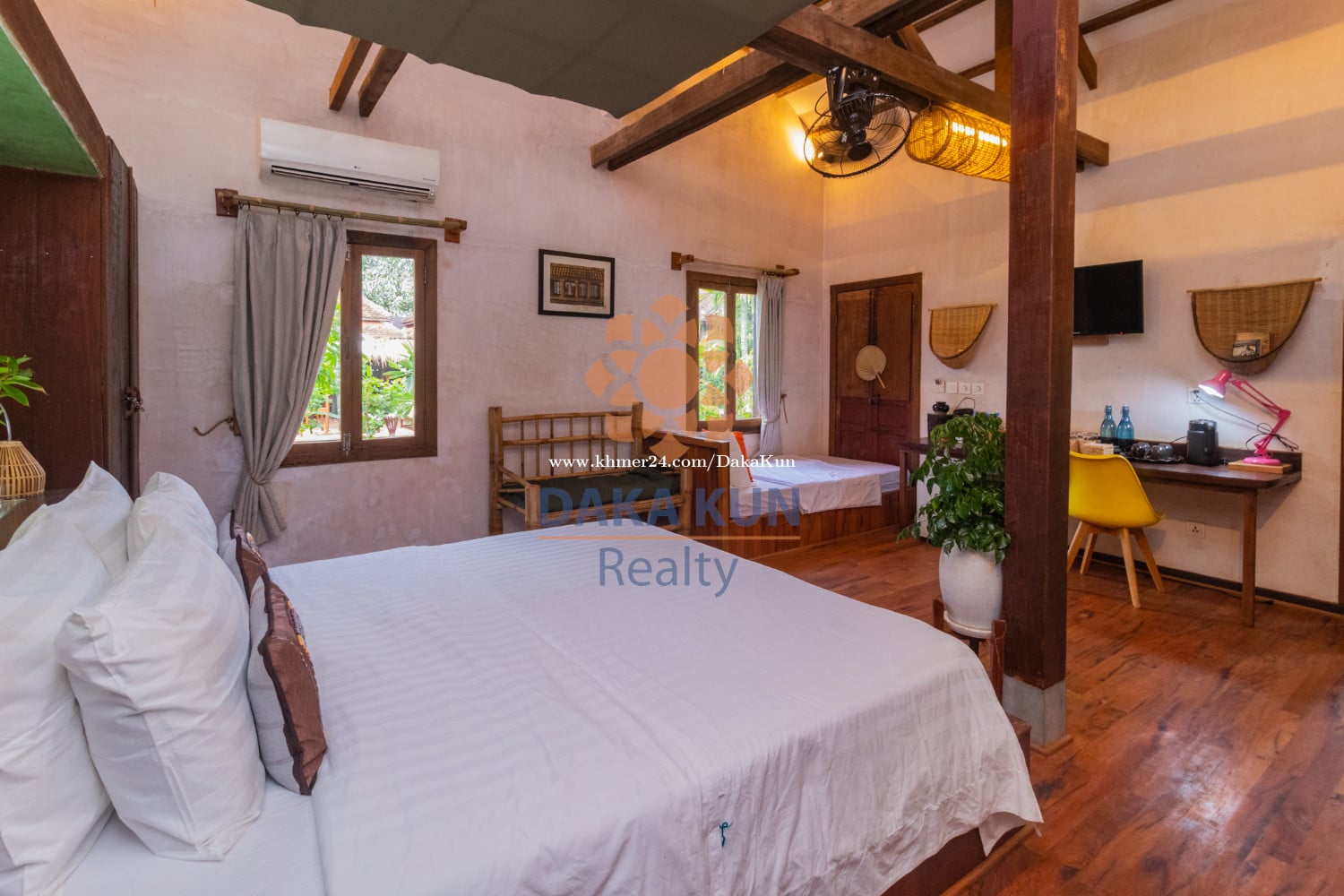 Contact Daka Kun Realty at 089899xxxClick To Call/012390xxxClick To Call ( WhatsApp & Telegram) or Email: inq****@dakakunrealty.comClick To Sent Email Property ID: DV1999 Rental Price: USD 500 Per month • House Size: 100 sqm • 1 Bedrooms and 1 Bathrooms ( 2 Beds) • Living area and Kitchen • Shared Swimming Pool • Fully Furnished • Bathtub and Balcony • Garden and Parking Space • Location: Kandaek, Siem Reap —---------------------------------------------------------------------------- More option: www.dakakunrealty.com Telegram channel ---> https://t.me/dakakunrealty Real Estate Agent: Yeun Sam Ath Nr: R-21-381-01