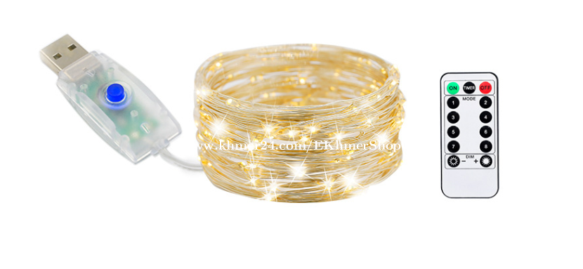 ដឹកជូនជិតឮពីទីតាំងខ្ញុំ នឹង អាចផ្ញើតាមខេត្ត Free delivery near near from my location call/telegram/WhatApps : 016998xxxClick To Call Location: https://maps.app.goo.gl/FXmsUYinLKz4J9HG6 Telegram: https://t.me/ekhmershop 10 meters Christmas string lights, LED, hot-selling, remote control, copper wire lights, decorative lights, green wire, LED copper wire light strings, starry sky Christmas lights. 1. Warm White 10meters each 2. Four colors 10meters each