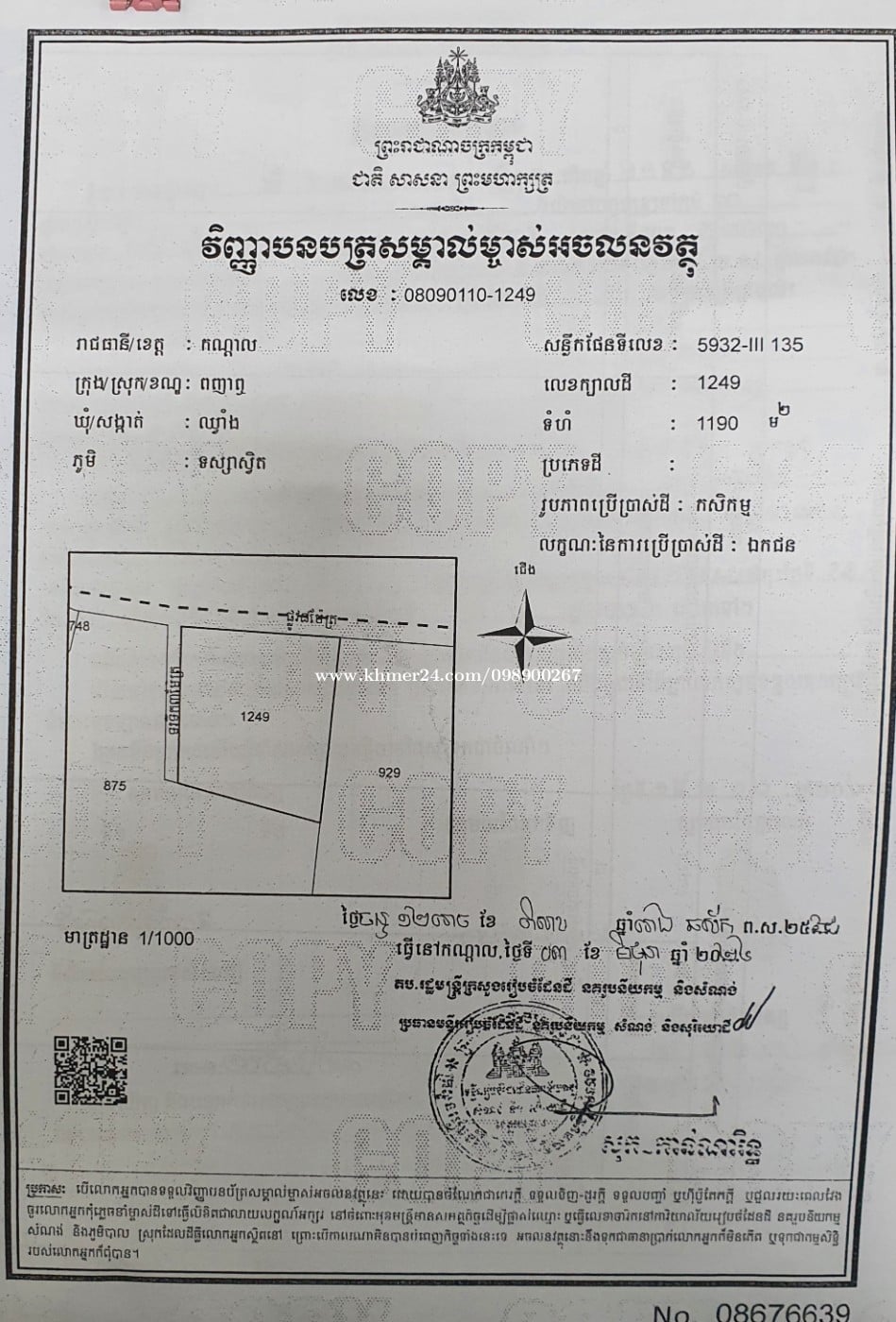 Contact Info: Please don't forget to mention that you found this ad on khmer24.com.