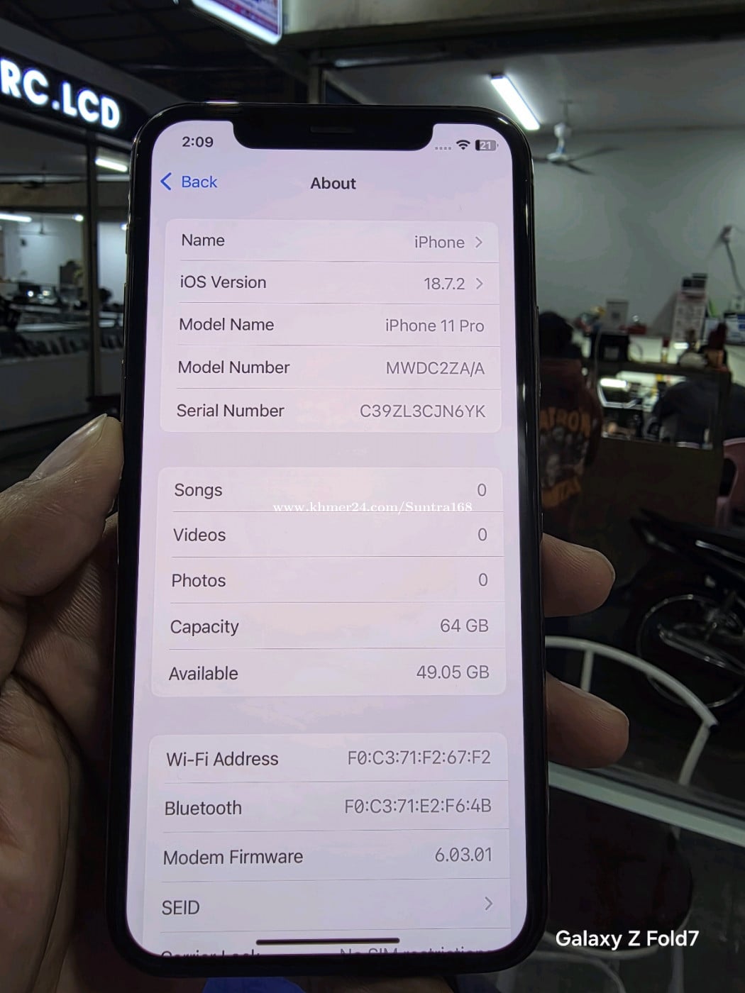 Iphone 11Proតូច 64G Zaសុីម2 សំណុំសុីន ស្អាត98%