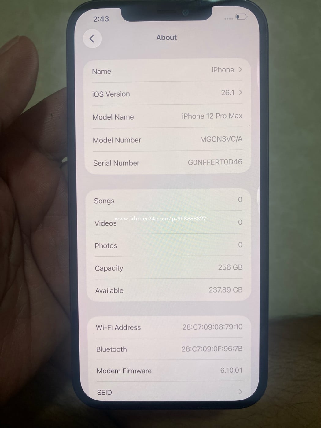 12pm សានុំ 256G បាយផាស់ ប្រើបានតែហ្វាយហ្វាយ 168$
