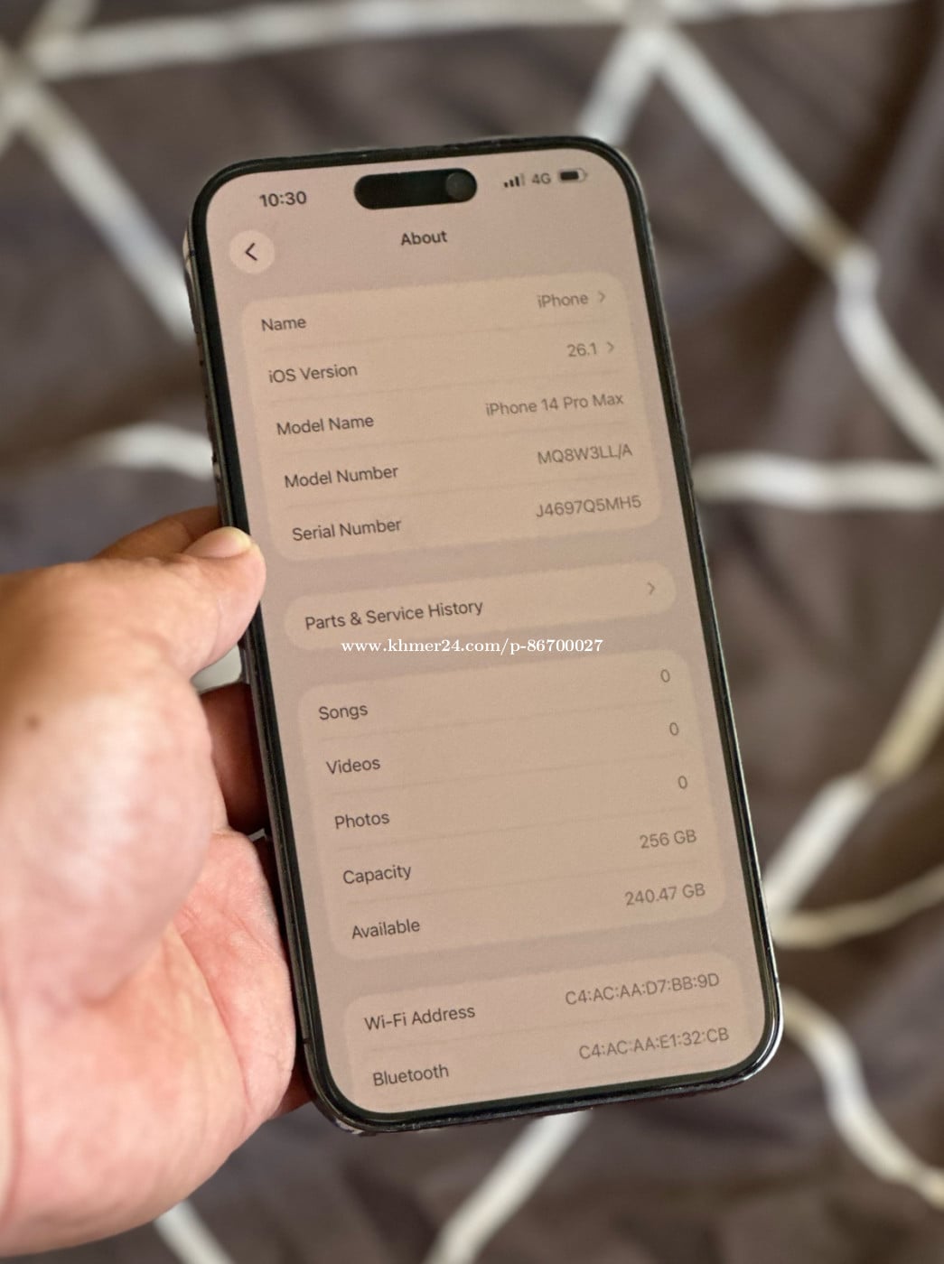 14 Pro Max LL/A 256g ដូរថ្មមួយ ក្រៅពីហ្នឹងហ្សីនទាំងអស់ ធានាអត់មានឡុកសុីមអីទេ ស្អាតក្បែរ 99% Telegram: https://t.me/Heatoun