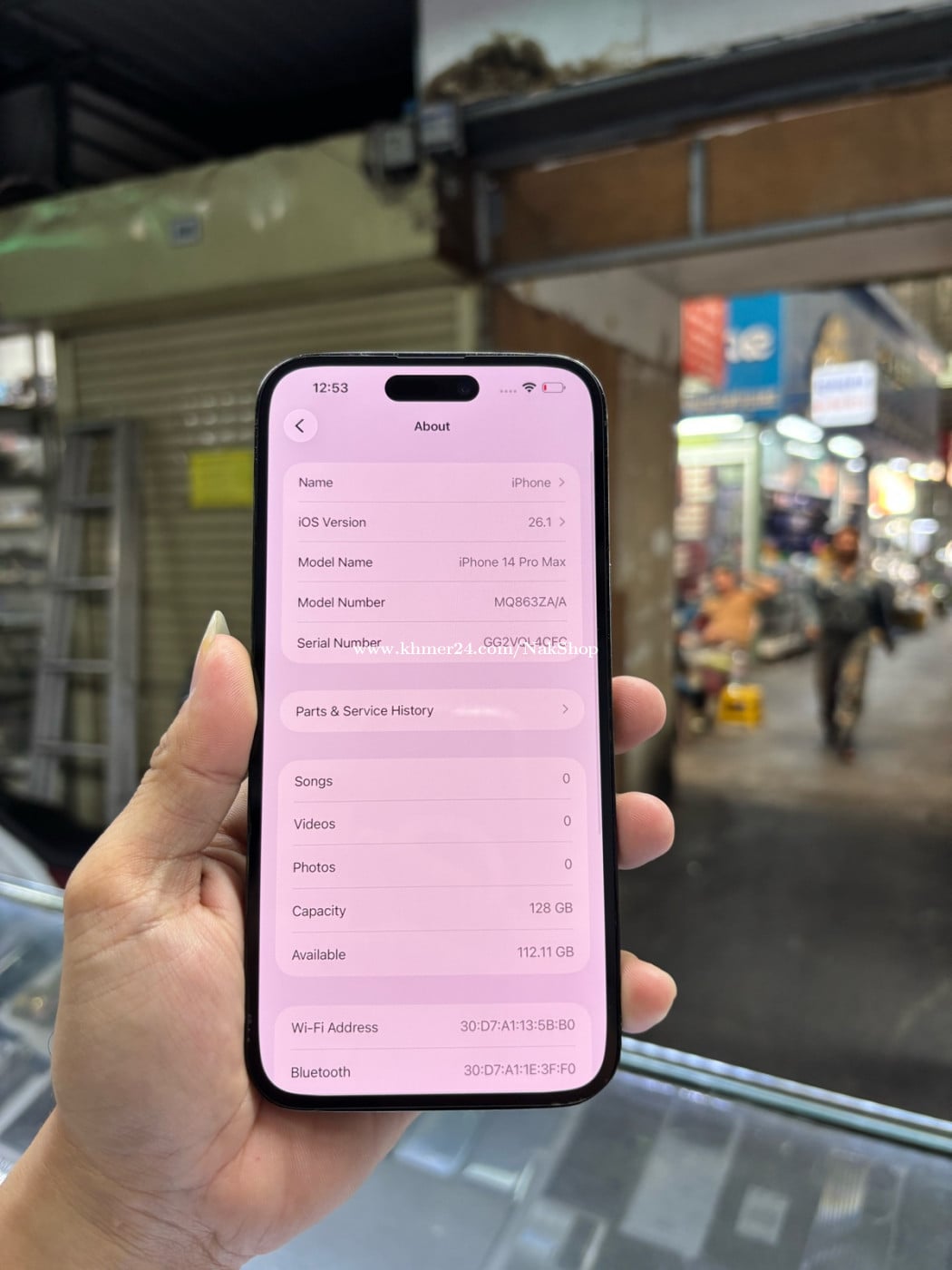 14pro max 128G ZA sim2 ដូរថ្ម និង ខ្នង ថ្ម90%