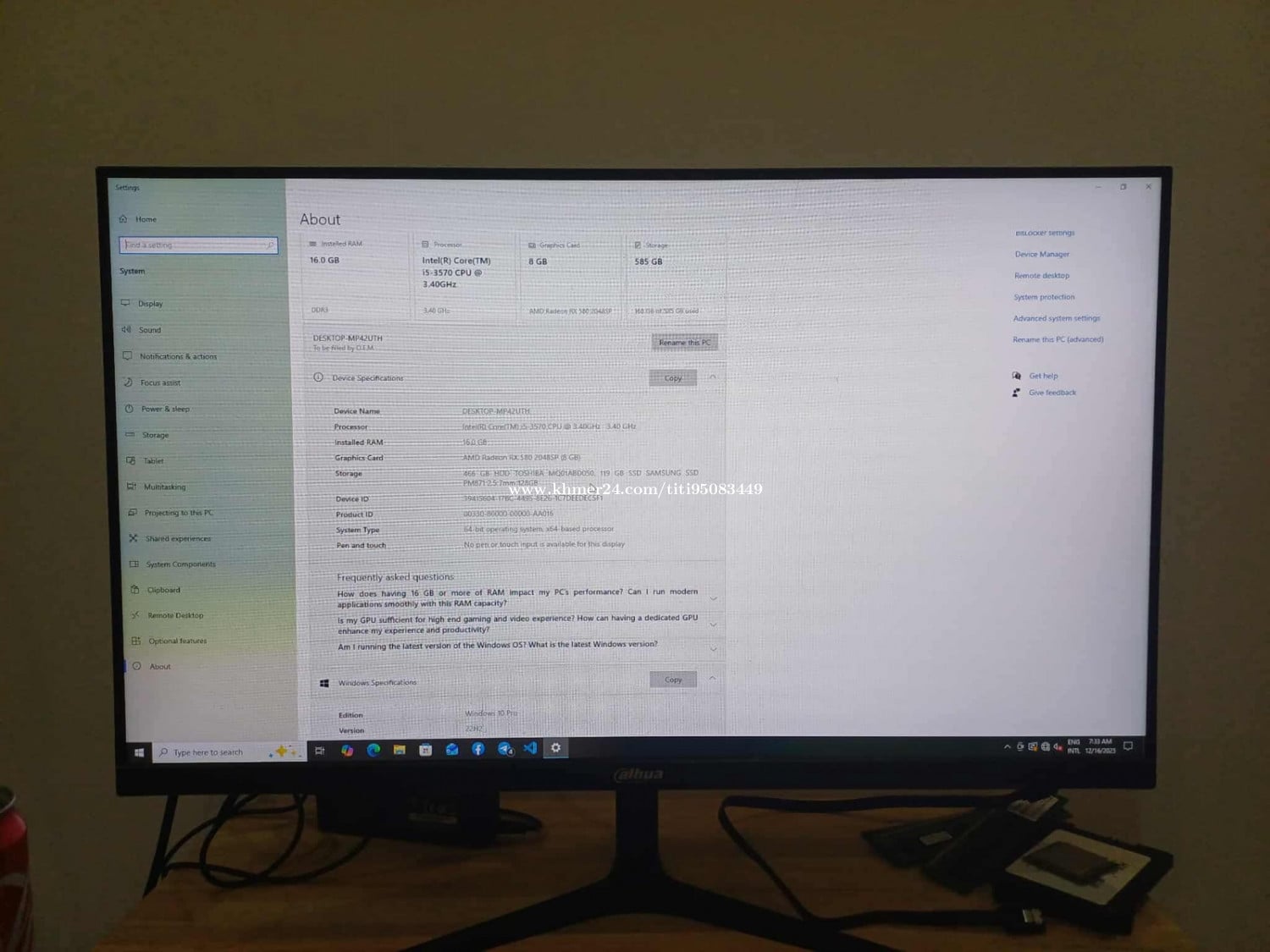 I5 3 Ram16 Ssd128 Hdd500 Vga 580 8g Monitor 24in Five m Valorant csgo Free mouse keyboard