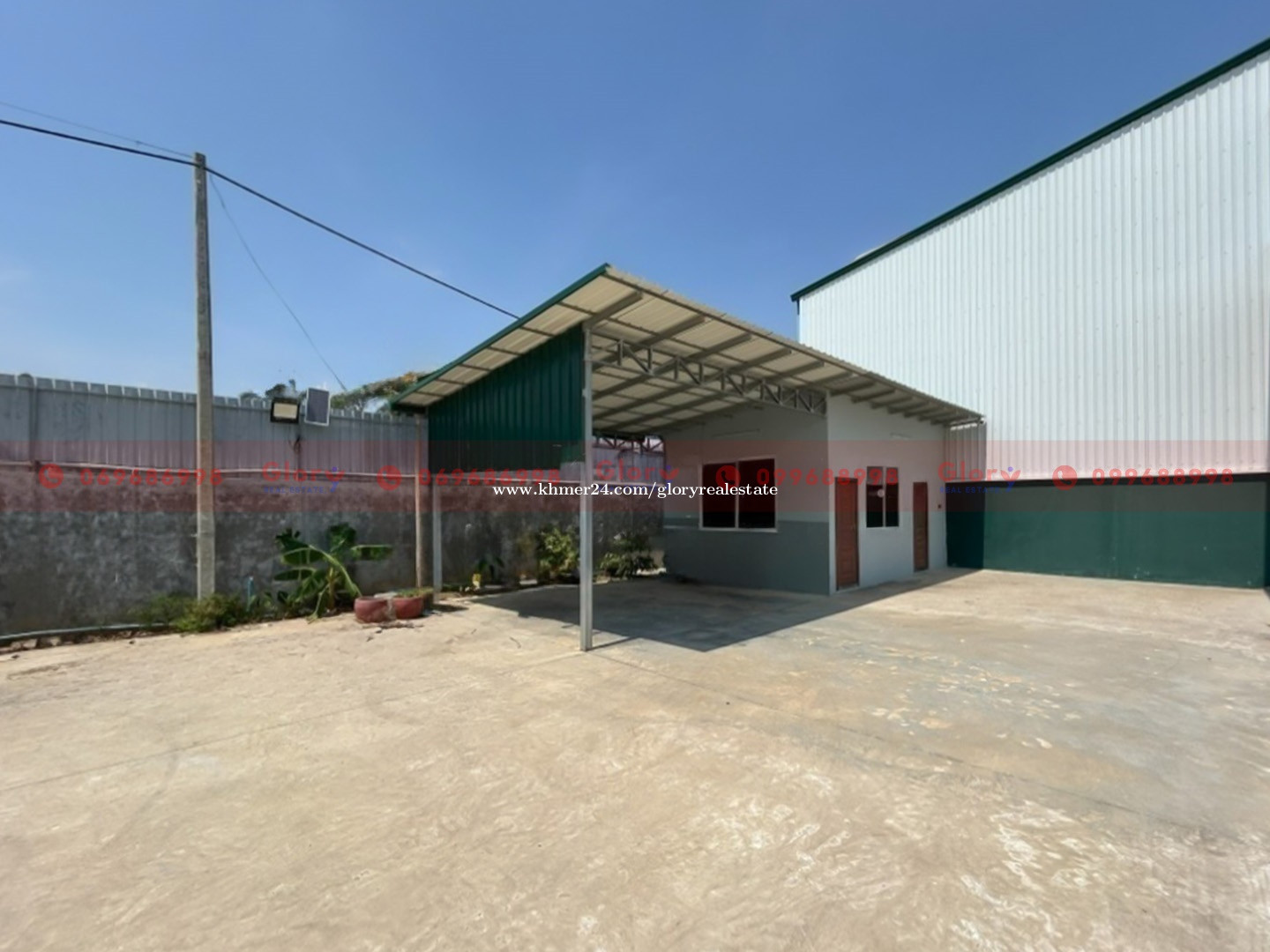This spacious warehouse property is now available for lease along a major road in the Kamboul area, offering excellent accessibility and a highly functional layout suitable for various industrial and commercial operations. Property Overview: - Warehouse size: 20 m ร 75 m - Total land size: 4,500 sqm - Office Building (2 floors): 120 sqm (6 m ร 10 m) - Management office: 28 sqm (4 m ร 7 m) - Staff building (2 floors): 280 sqm (20 m ร 7 m), includes 6 rooms - Electric power: 3-phase, 63 amps - Location: Convenient access to major transportation routes Suitable For: This property is ideal for small-scale manufacturing, storage, distribution, or other industrial operations that require both warehouse space and ample land for maneuvering, parking, or expansion. ๐ Property ID: GP-60990 For more information or to schedule a viewing, please donโt hesitate to contact us. ๐ฒ Call: 069686xxxClick To Call/099688xxxClick To Call ๐ฌ Telegram: https://t.me/glorycam ๐ฌ WhatsApp: https://wa.me/+85569686998 ๐ฌ WeChat: gloryrealestate ๐ง Email: con****@glorycambodia.comClick To Sent Email