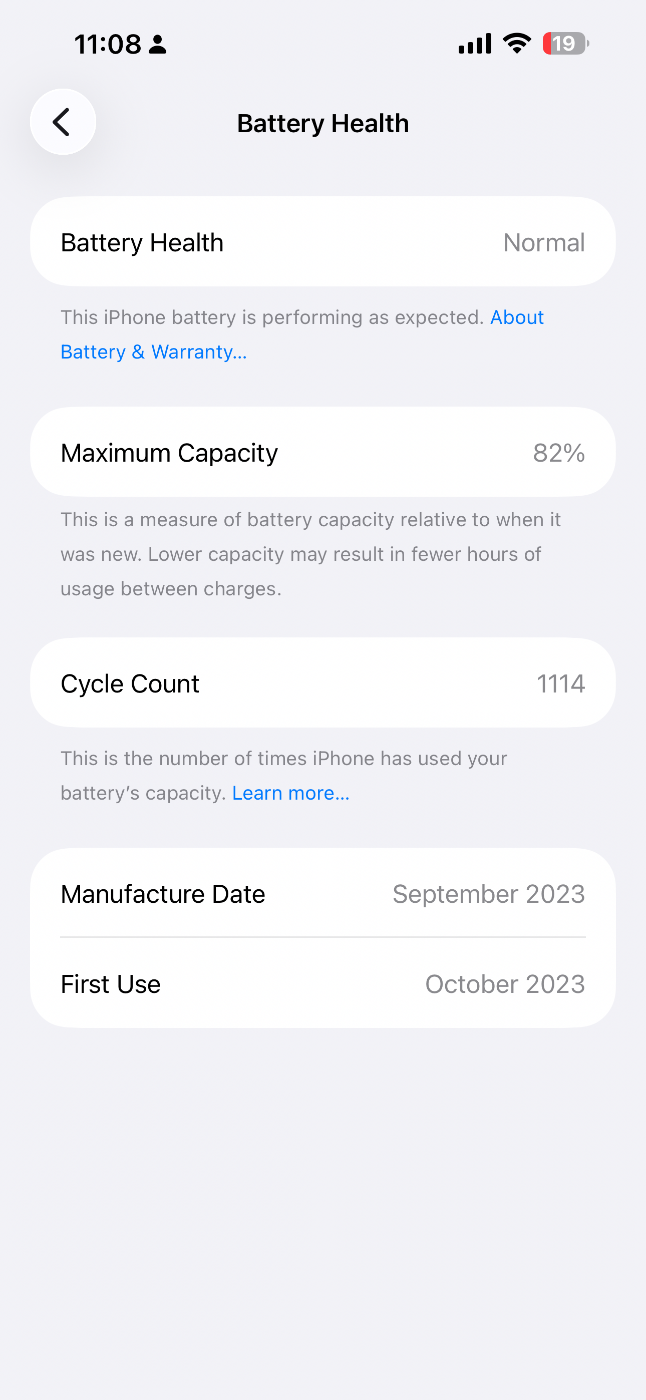 Condition: Body 99% Battery Health: 82% ZA/A : Sim2 Bought New on 14/10/2023 with Receipt Full Box with Original ខ្សែសាក