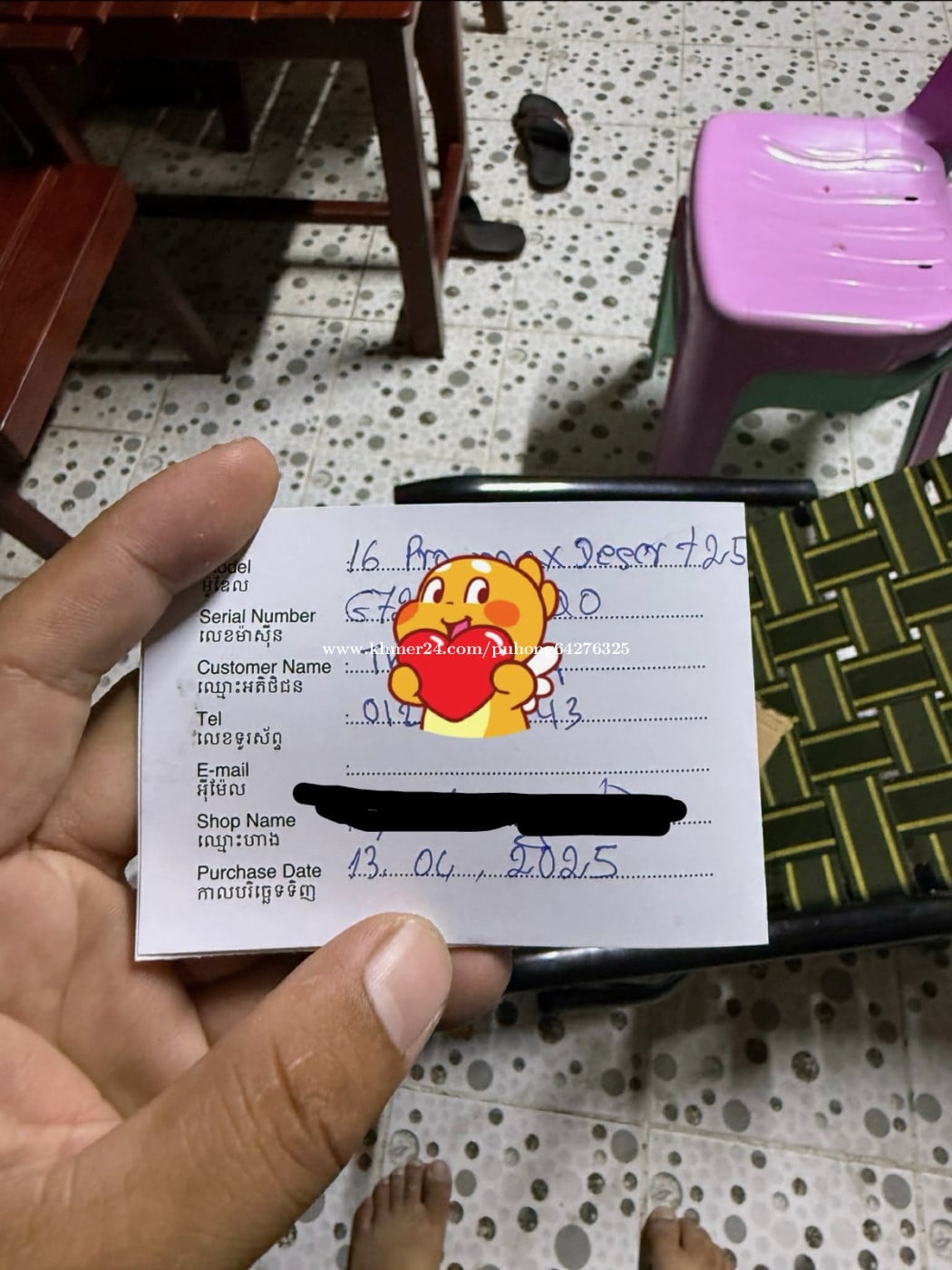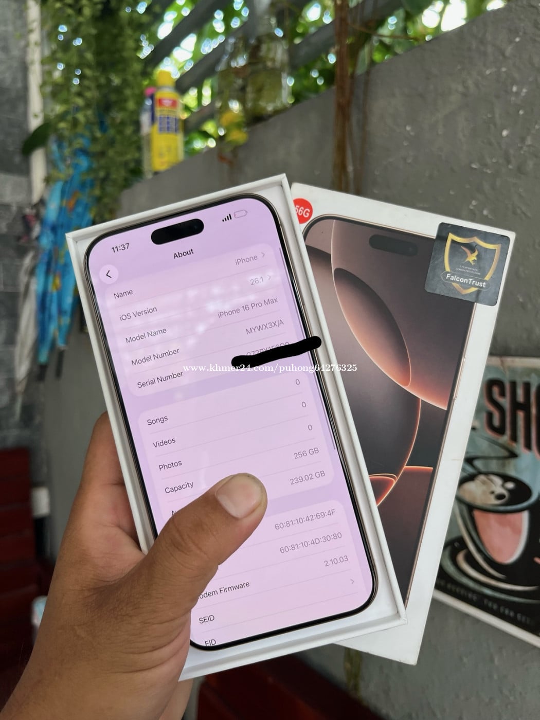16 PM 256G XA នៅធានាដល់ ខែ 04.2026 885$