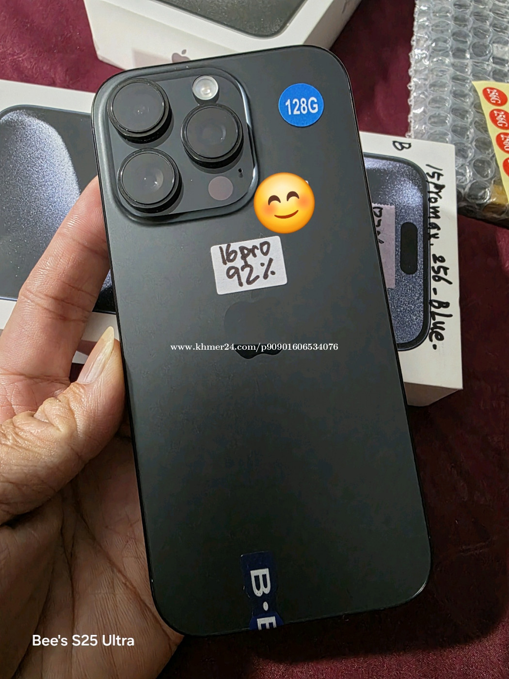 iPhone 16 Pro 128g ពណ៍ខ្មៅ សំនុំស៊ីនណែនស្អាត ថ្មស៊ីន 92% Sim1+Esim លក់ 745$ Tel: 093989xxxClick To Call