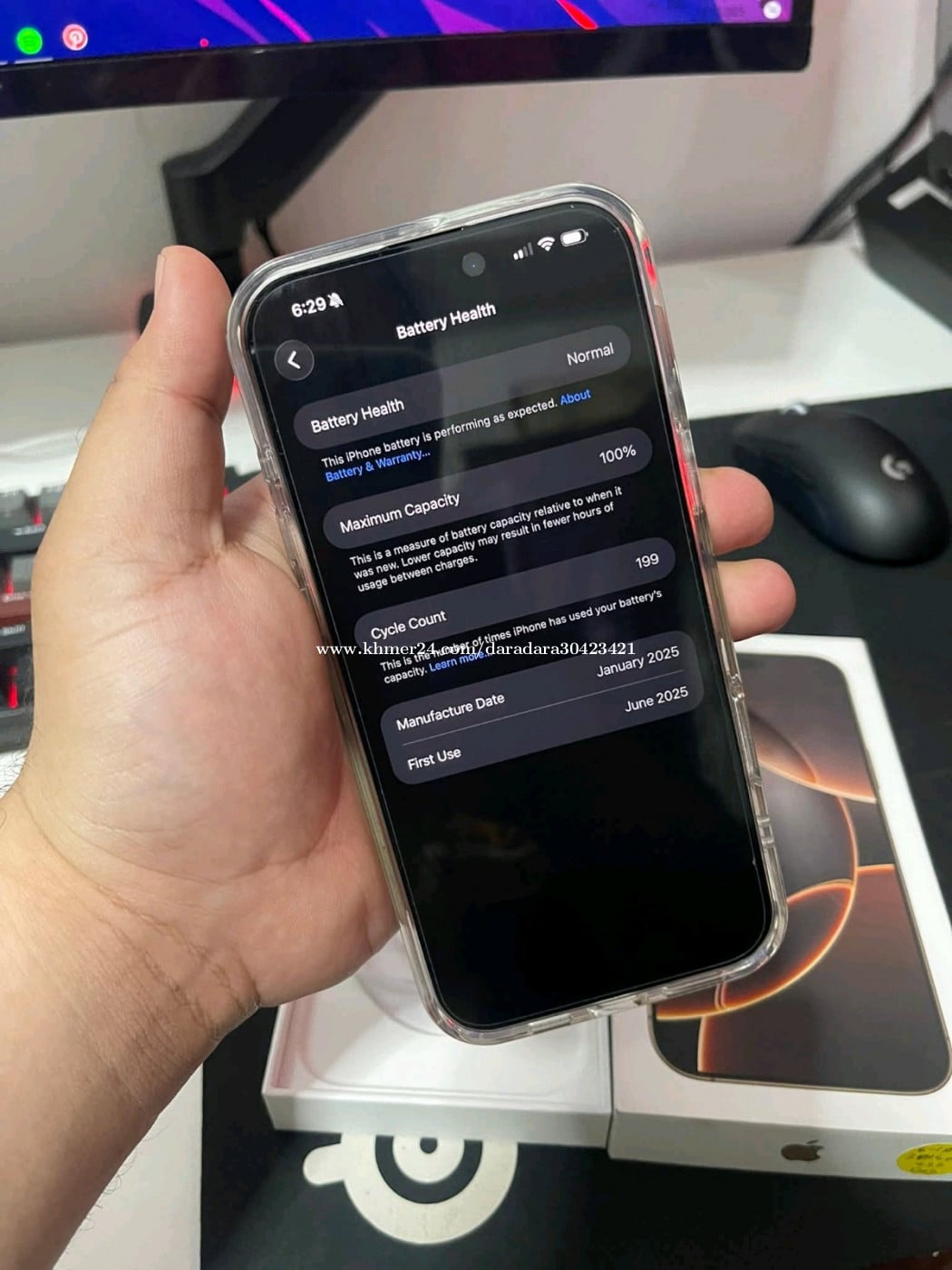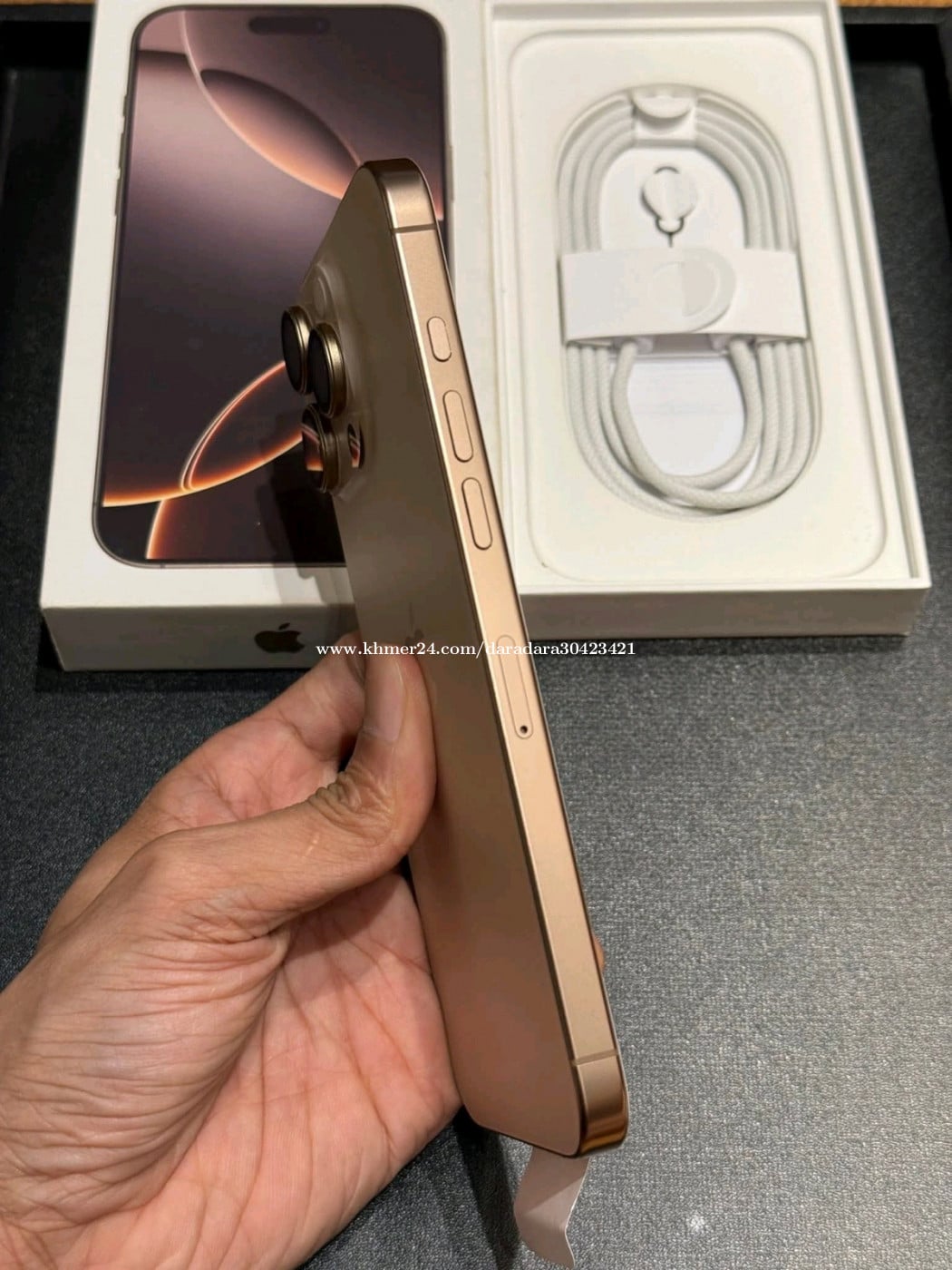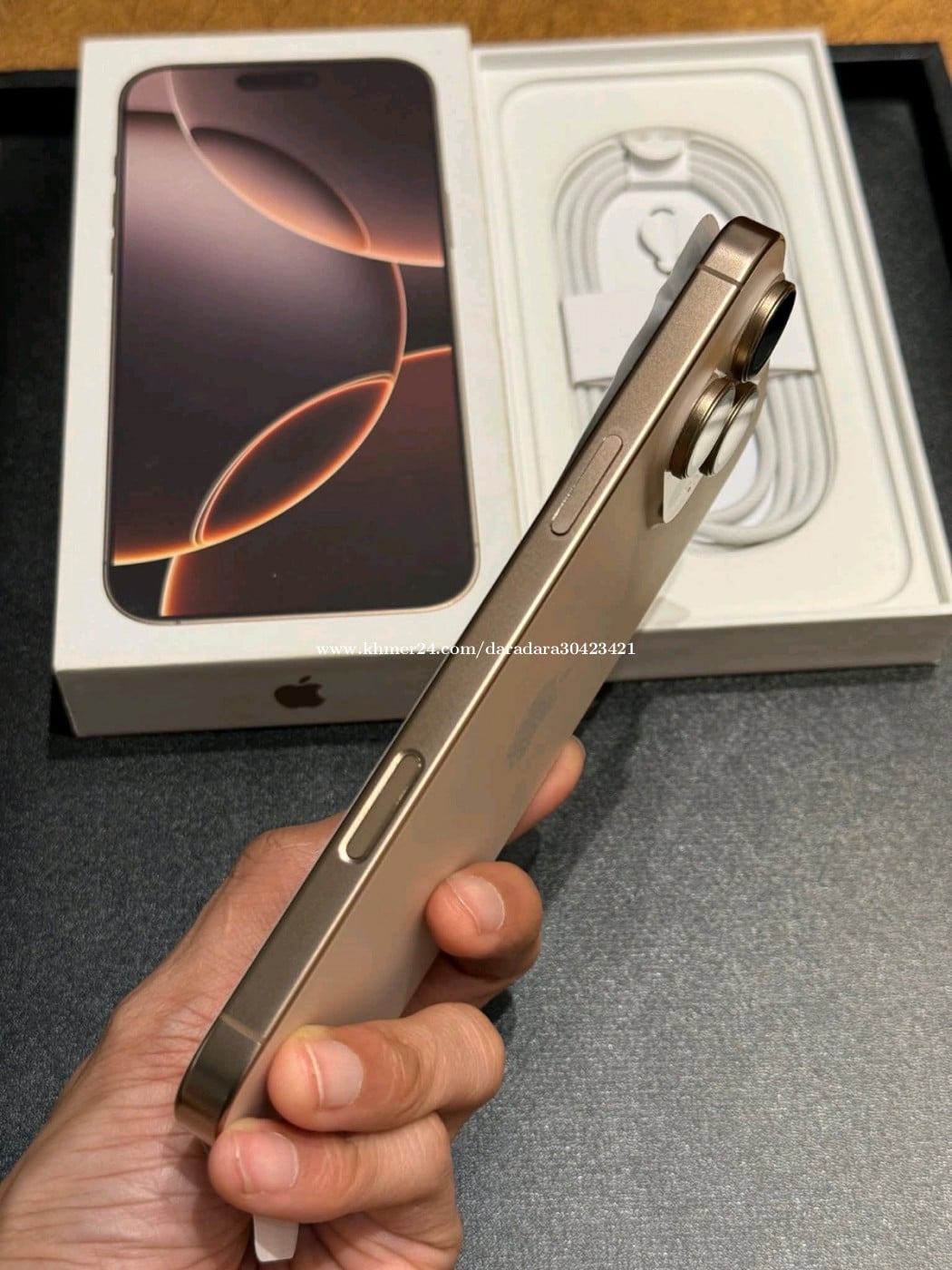 16 Pro Max ស្អាតដូចថ្មី99% ថ្ម100% ZA Sim2 Fullset 256GB មានប្រអប់
