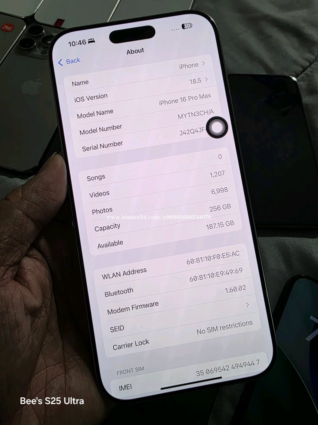 iPhone 16 Pro Max 256g CH ស៊ីមពីរ ពណ៍ស សំនុំណែនស្អាតដូចថ្មី ថ្ម100% លក់ 835$ Tel: 093989xxxClick To Call