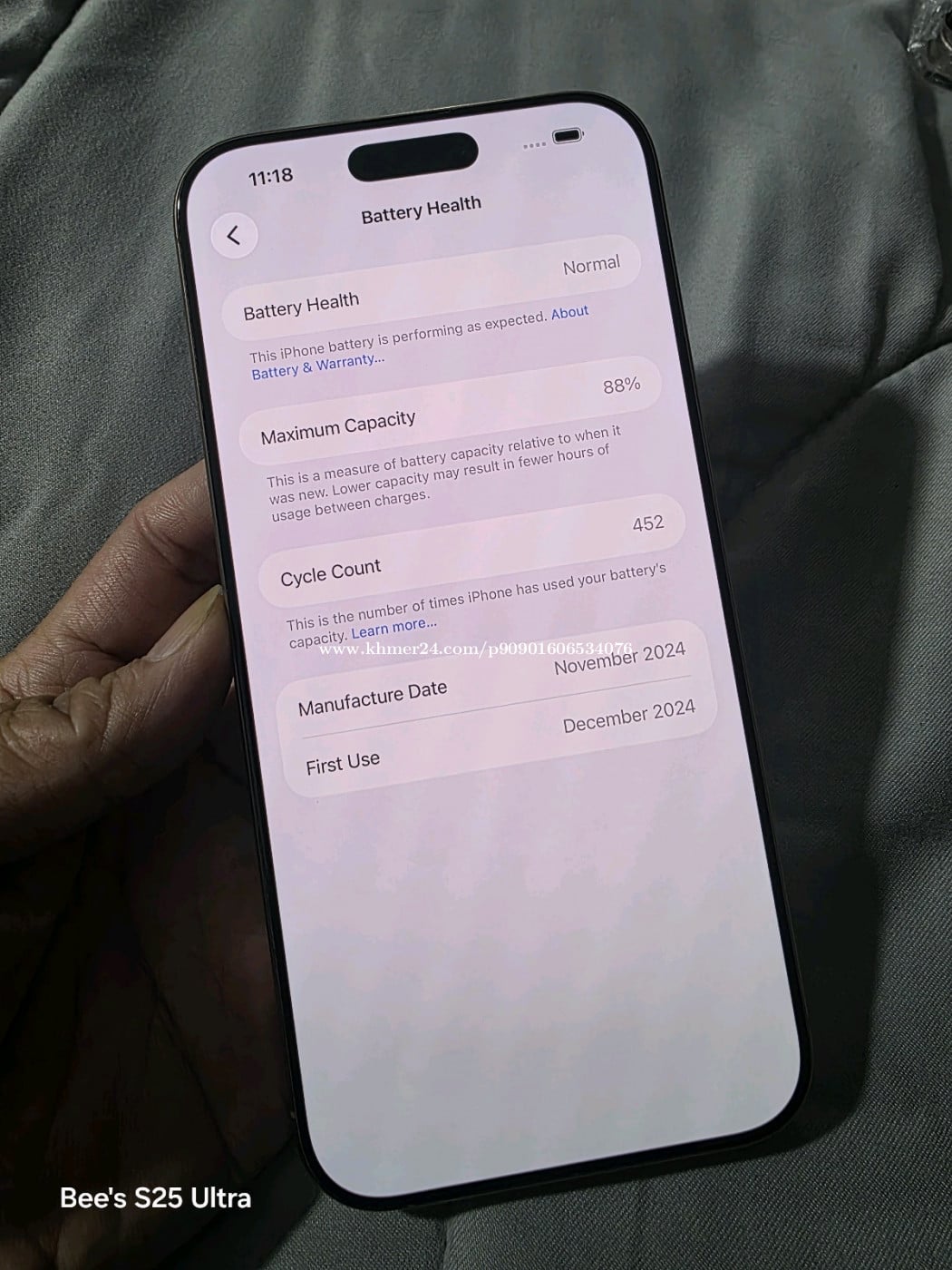 iPhone 16 Pro Max 256g ZA ស៊ីមពីរ ពណ៍មាសស្អាត សំនុំណែន ថ្មស៊ីន 88% លក់ 835$ Tel: 093989xxxClick To Call