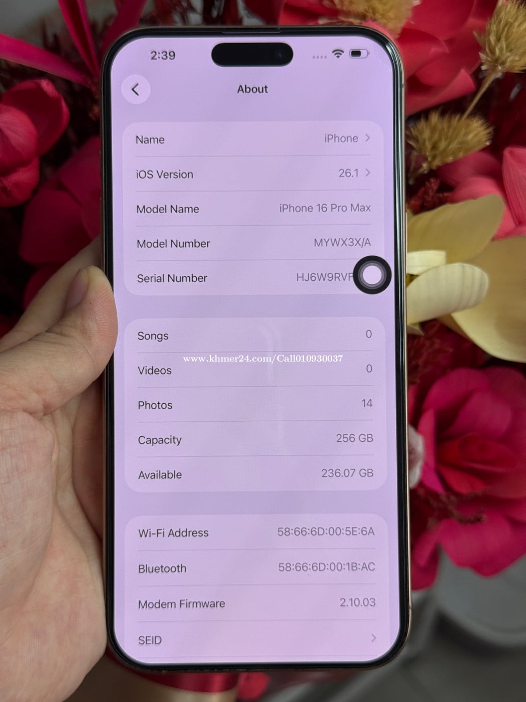 ស្អាត សំណុំហ្ស៊ីន 256GB code X/A ពណ៌ Desert ធានាម៉ាស៊ីន 1សប្ដាហ៍ ថែមដុំសាក ខេស ស្រ្គីន ☎️ 010930xxxClick To Call Telegram https://t.me/LyMengSmartphone 📍ផ្លូវ 2002 ខាងលិចផ្សារ 2002 ចំងាយ 200 ម៉ែត្រ https://maps.app.goo.gl/wjh6PYsn5L2ewhFG6?g_st=ic