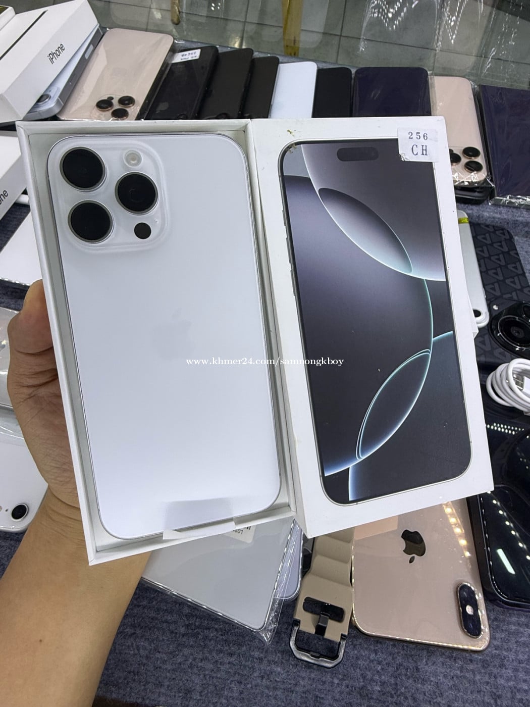 Hello I want to sell 16 Pro max White C/H 256GB ថ្ម100% 99.99%
