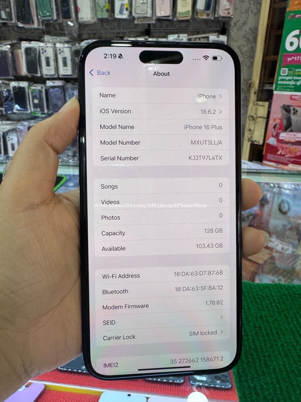 iPhone 16plusមូយទឹក128Gរបស់អាមេរិកប្រេីសុីមក្រៅ2 LockESim
