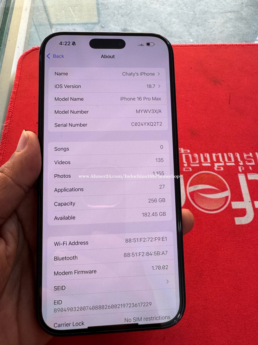 16PM-XA 99% /256g ថ្ម100% ណែន