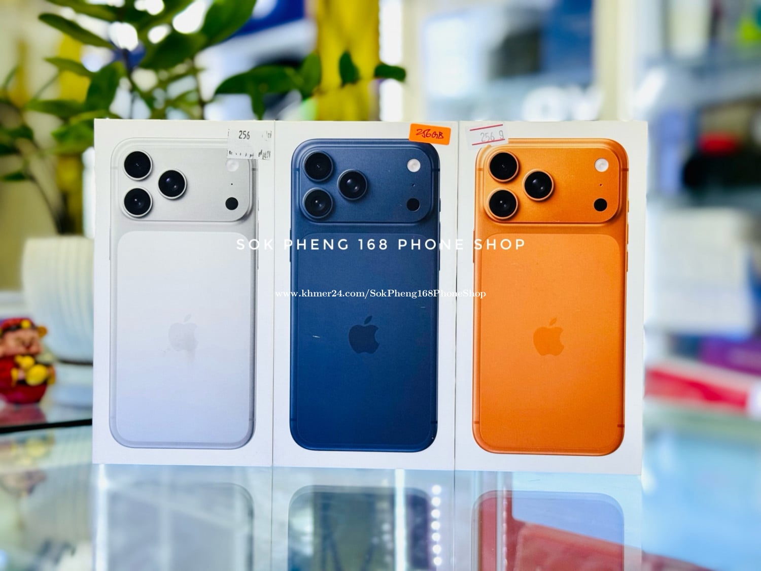 តម្លៃUpdateថ្ងៃ04/12 🇭🇰17 Pro Max 256GB ZA/A No Active SIM1+eSIM - Orange: $1389 - Blue: $1389 - White: $1389 🇭🇰17 Pro Max 512GB ZA/A No Active SIM+eSIM - Orange: $1589 - Blue: $1589 - White: $1589 🇦🇺17 Pro Max 256GB X/A SIM+eSIM ធានា2ឆ្នាំ - Orange: $1489 - Blue: $1489 - White: $1489 🇦🇺17 Pro Max 512GB X/A SIM+eSIM ធានា2ឆ្នាំ - Orange: $1739 - Blue: $1719 - White: $1739 🇺🇸17 Pro Max 256GB LL/A eSIM - Orange: $1259 - Blue: $1239 - White: $1289 🇺🇸17 Pro Max 512GB LL/A eSIM - Orange: $1549 - Blue: $1539 - White: $1599 NA: No Active ថ្មីមិនទាន់បើកប្រអប់ AT: Active ថ្មី បើកប្រអប់ 📥ដើម្បីសាកសួរតម្លៃពិសេស! សូមចូលកាន់Telegram Link: https://t.me/sokpheng168phoneshop ឬទាក់ទងមកកាន់ផេកផ្ទាល់ ឬទាក់ទងតាមលេខទូរស័ព្ទខាងក្រោម 📞Tel: 093550xxxClick To Call, 092550xxxClick To Call, 012840xxxClick To Call, 093666xxxClick To Call (មានTelegram ទាំងអស់) 💌Telegram Link: https://t.me/sokpheng168phoneshop 📩Telegram Channel: https://t.me/sokpheng168phoneshopofficial 📍ទីតាំង: ហាងលក់ទូរស័ព្ទដៃទំនើប សុខផេង 168 ទល់មុខក្លោងទ្វាផ្សារដេប៉ូ (ផ្លាកVIVO) ជួរខាងផ្ទះ 70ម៉ែត្រពីស្តុបផ្សារដេប៉ូ 📍Google Map: https://goo.gl/maps/oPeho7xXb6DkJETT6 🚚 មានសេវាដឹកជញ្ជូនទាំងប្រទេស ដោយឥតគិតថ្លៃ
