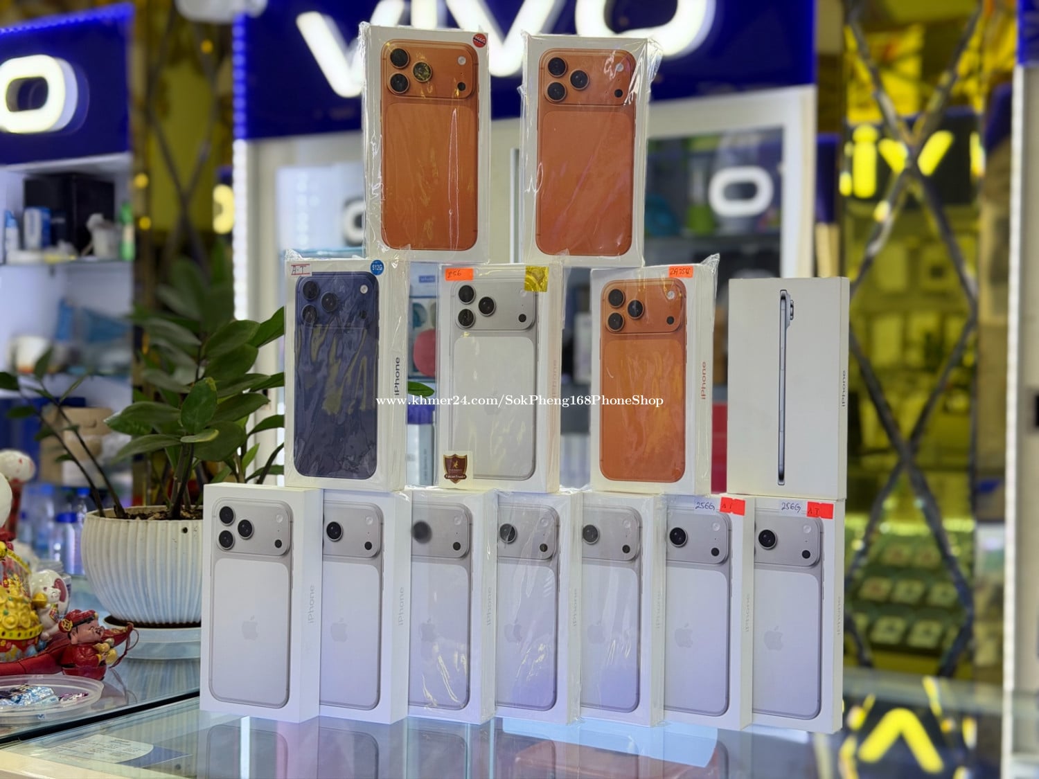 តម្លៃUpdateថ្ងៃ04/12 🇭🇰17 Pro Max 256GB ZA/A No Active SIM1+eSIM - Orange: $1389 - Blue: $1389 - White: $1389 🇭🇰17 Pro Max 512GB ZA/A No Active SIM+eSIM - Orange: $1589 - Blue: $1589 - White: $1589 🇦🇺17 Pro Max 256GB X/A SIM+eSIM ធានា2ឆ្នាំ - Orange: $1489 - Blue: $1489 - White: $1489 🇦🇺17 Pro Max 512GB X/A SIM+eSIM ធានា2ឆ្នាំ - Orange: $1739 - Blue: $1719 - White: $1739 🇺🇸17 Pro Max 256GB LL/A eSIM - Orange: $1259 - Blue: $1239 - White: $1289 🇺🇸17 Pro Max 512GB LL/A eSIM - Orange: $1549 - Blue: $1539 - White: $1599 NA: No Active ថ្មីមិនទាន់បើកប្រអប់ AT: Active ថ្មី បើកប្រអប់ 📥ដើម្បីសាកសួរតម្លៃពិសេស! សូមចូលកាន់Telegram Link: https://t.me/sokpheng168phoneshop ឬទាក់ទងមកកាន់ផេកផ្ទាល់ ឬទាក់ទងតាមលេខទូរស័ព្ទខាងក្រោម 📞Tel: 093550xxxClick To Call, 092550xxxClick To Call, 012840xxxClick To Call, 093666xxxClick To Call (មានTelegram ទាំងអស់) 💌Telegram Link: https://t.me/sokpheng168phoneshop 📩Telegram Channel: https://t.me/sokpheng168phoneshopofficial 📍ទីតាំង: ហាងលក់ទូរស័ព្ទដៃទំនើប សុខផេង 168 ទល់មុខក្លោងទ្វាផ្សារដេប៉ូ (ផ្លាកVIVO) ជួរខាងផ្ទះ 70ម៉ែត្រពីស្តុបផ្សារដេប៉ូ 📍Google Map: https://goo.gl/maps/oPeho7xXb6DkJETT6 🚚 មានសេវាដឹកជញ្ជូនទាំងប្រទេស ដោយឥតគិតថ្លៃ