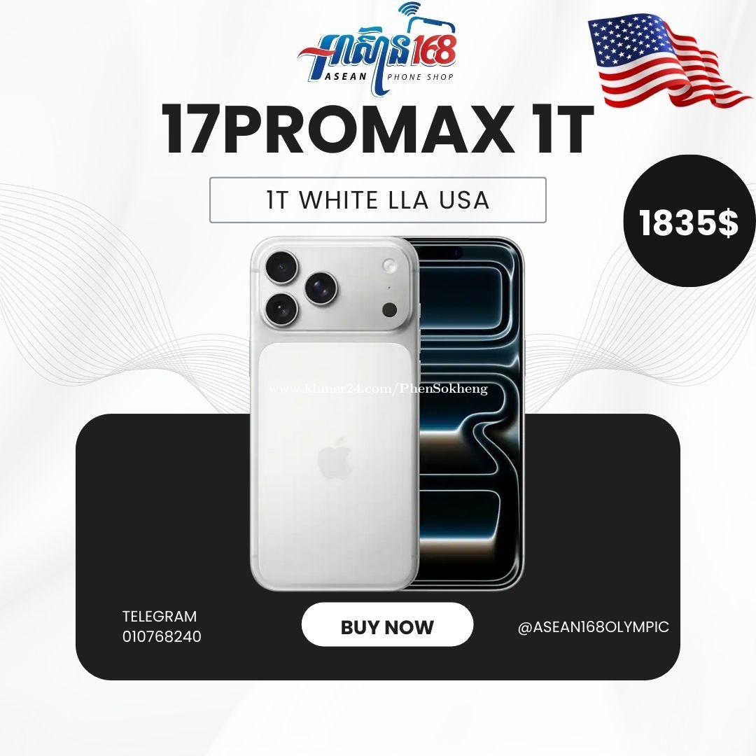 17PM 1T LLA NA Blue / Orange 1765$ White 1835$ តម្លៃនេះមានរួមជាមួយ case screen ឆ្នាំងសាកហ្សុីន ធានាមួយខែ លើម៉ាសុីន 1 ឆ្នាំលើ Carrier Lock 🔒 -------------------------- 010768xxxClick To Call/078446xxxClick To Call 8AM-9PM Channel Telegram https://t.me/Asean168Olympic Telegram https://t.me/+85510768240 ------------------------- អាសយដ្ឋាន៖ ផ្ទះលេខ 99 ផ្លូវ 199 កែង318 ក្បែរវីរៈប៊ុនថាំអូរឡាំពិច