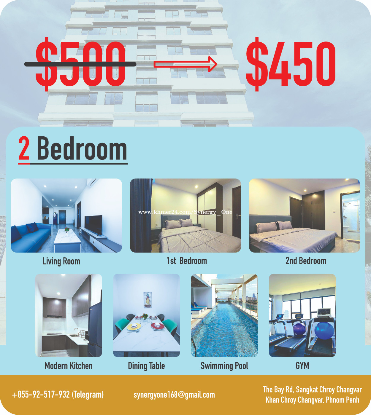 Location: Synergy One Apartment, The Bay Rd, Sangkat Chroy Changva, Khan Chroy Changva Chrouy Changva, Chrouy Changva, Phnom Penh